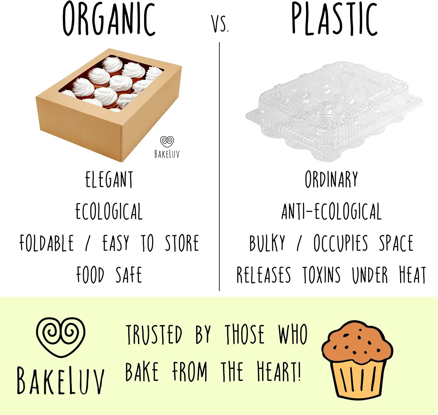 - 🧁 WHATS INCLUDED: 50 Pack, Brown / Kraft, 13x9.5x4 Inches Cupcake Boxes with Window + Cupcake Inserts. Our clear window Cupcake Containers are empty; sorry, food is not included (it is used in the images is for illustrative purposes only). Our customers also love to use these cupcake carrier boxes as cake boxes for muffins as well as bakery boxes.