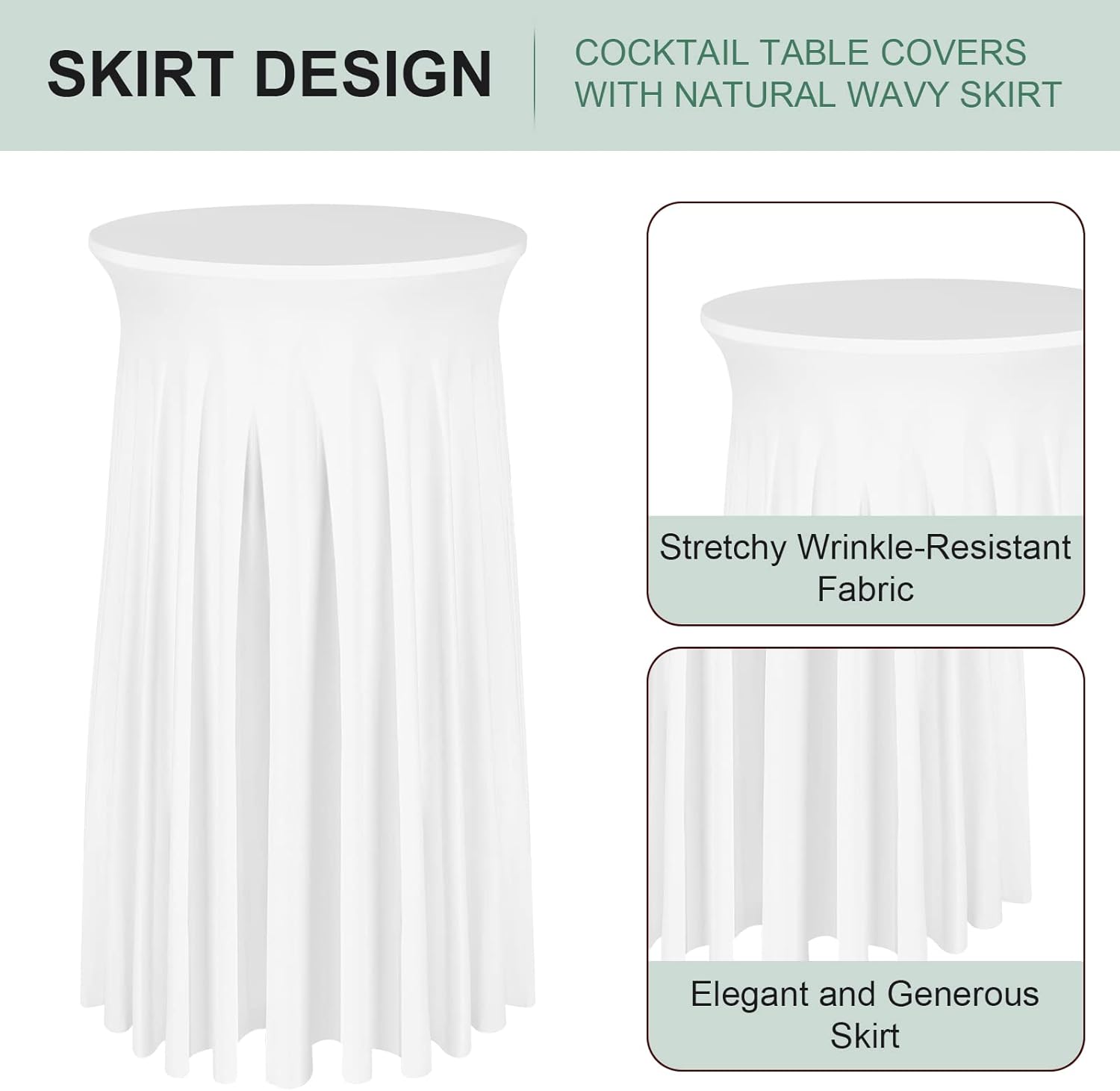 - Stretchy Wrinkle-Resistant Fabric - The table cover is made of silky smooth flexible wrinkle-resistant material, and it makes the table look neat and professional. The soft table skirt falls naturally, elegant, and generous
