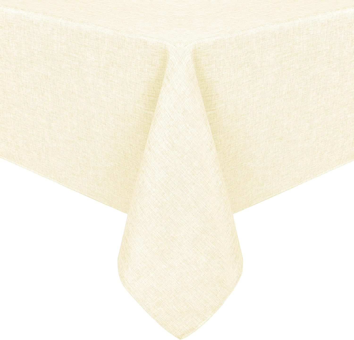 Hiasan Faux Linen Rectangle Tablecloth - Wrinkle and Stain Resistant Washable Table Cloth for Kitchen Dining Room Holiday Table Cover for Dinner, Champagne, 90 x 156 Inch