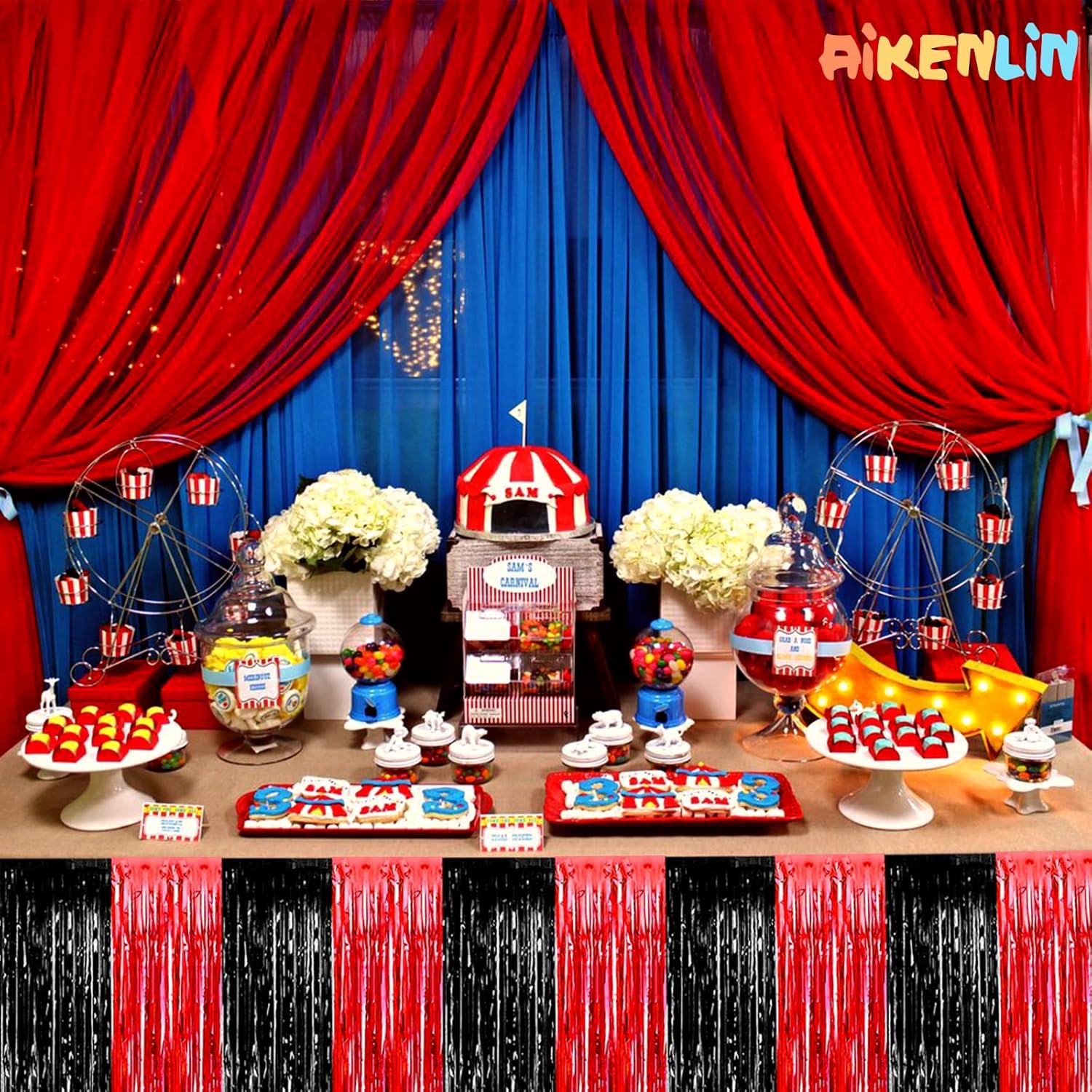 - 【Package Includes】6pcs/set metallic fringe table skirts / shiny tassel banner, beautiful and shiny, provide you with great decoration effects, Each pack of table skirt measures 29x108 inches. Each one will be 9 Ft long, 6 pack will cover 54 FT length of tables.
