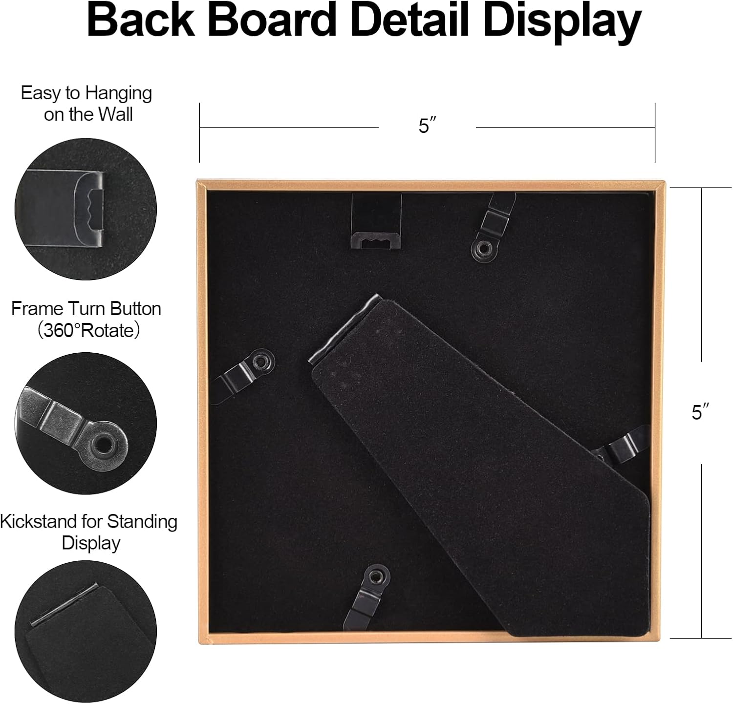 5x5 Picture Frames Gold - Brushed Brass Modern Simple Thin Aluminum Metal Photo Frame with HD Real Glass, Display for Tabletop and Wall Collage. (2 Pack)