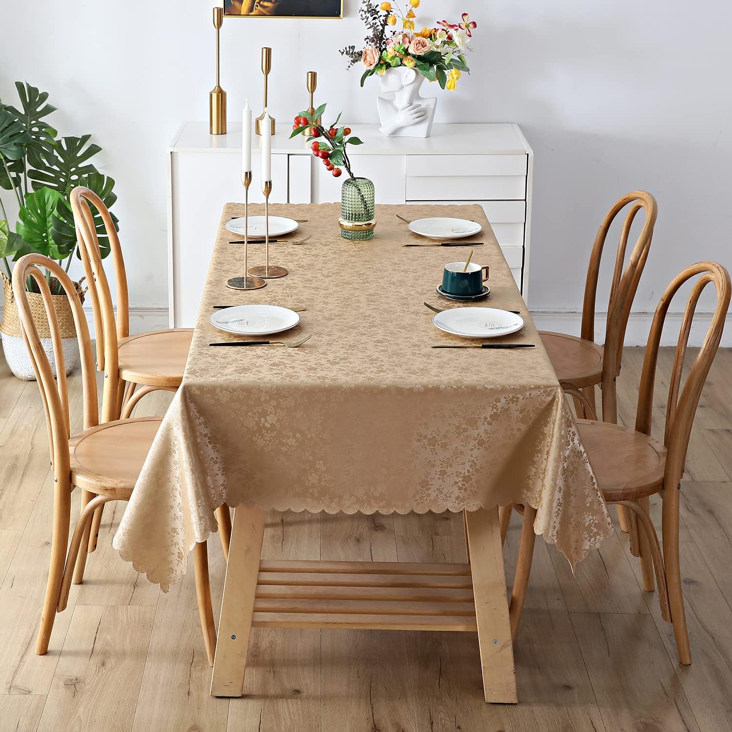 - [Elegant Vinyl Tablecloth] Featuring floral embossed tablecloth with pretty scalloped edges, nice warm tone and soft touch add an elegant touch to these tablecloths, they are suited for light up your fancy dinner.