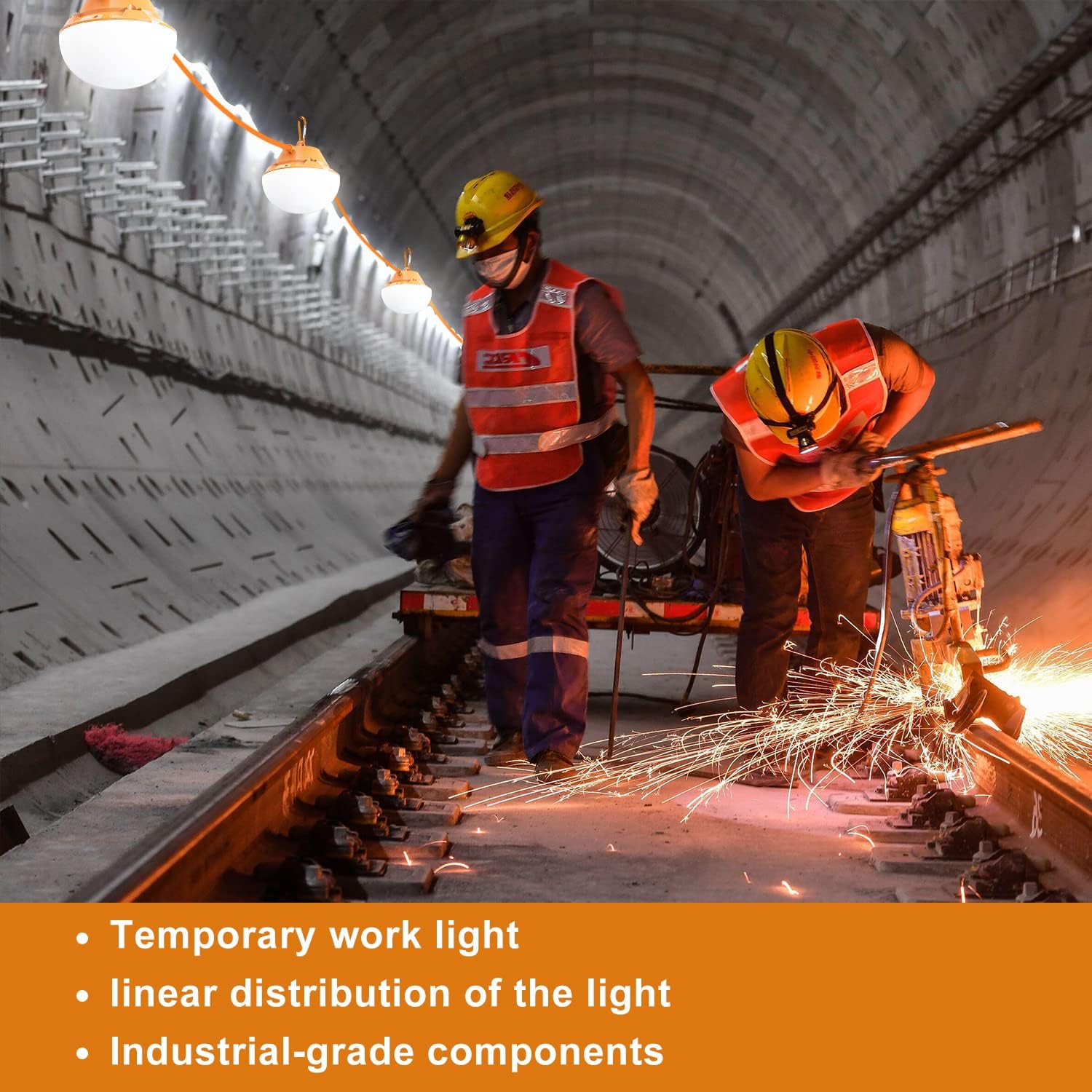 120FT Construction String Lights 180W String Work Light for Construction Jobsites, 18000Lumen Temporary Construction Work Lighting for Wide Application