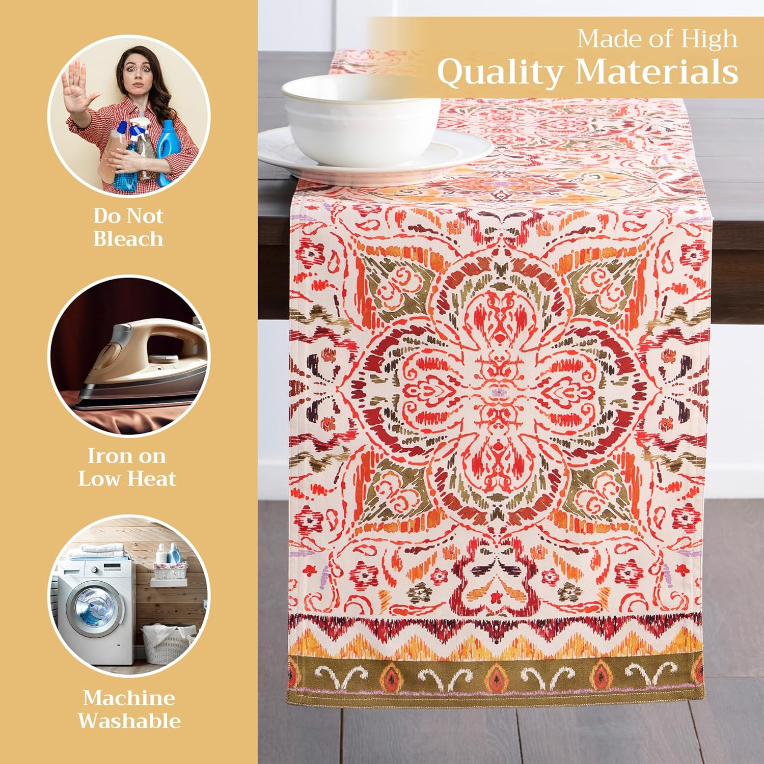 - Enhance Your Home: Crafted from 100% cotton, this reusable table runner adds a warm, seasonal touch to your dining decor. Ideal for Thanksgiving, Halloween decorations, or Christmas decorations—pair it with matching linens for an elegant fall or holiday gift