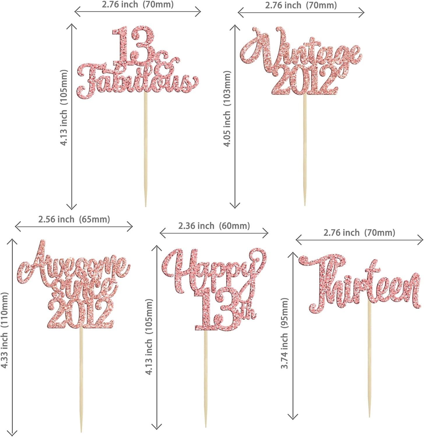 30Pcs Vintage 2012 Cupcake Toppers Glitter Thirteen 13 Fabulous Happy 13th Birthday Cupcake Picks Cheers to 13 Years for 13th Birthday Anniversary Party Cake Decorations Supplies Rose Gold