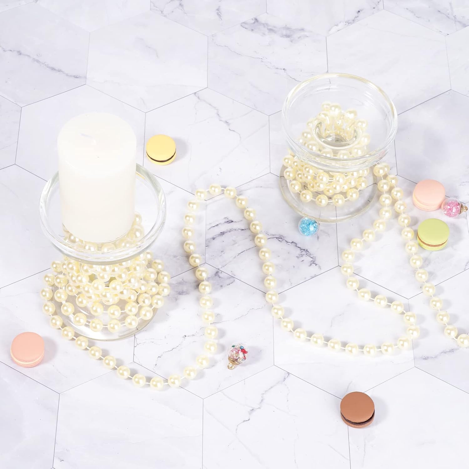 - Faux Pearl Garland: Add the elegance of pearls to your decorations, add sparkle and glamour to your handicrafts with this pearl garland