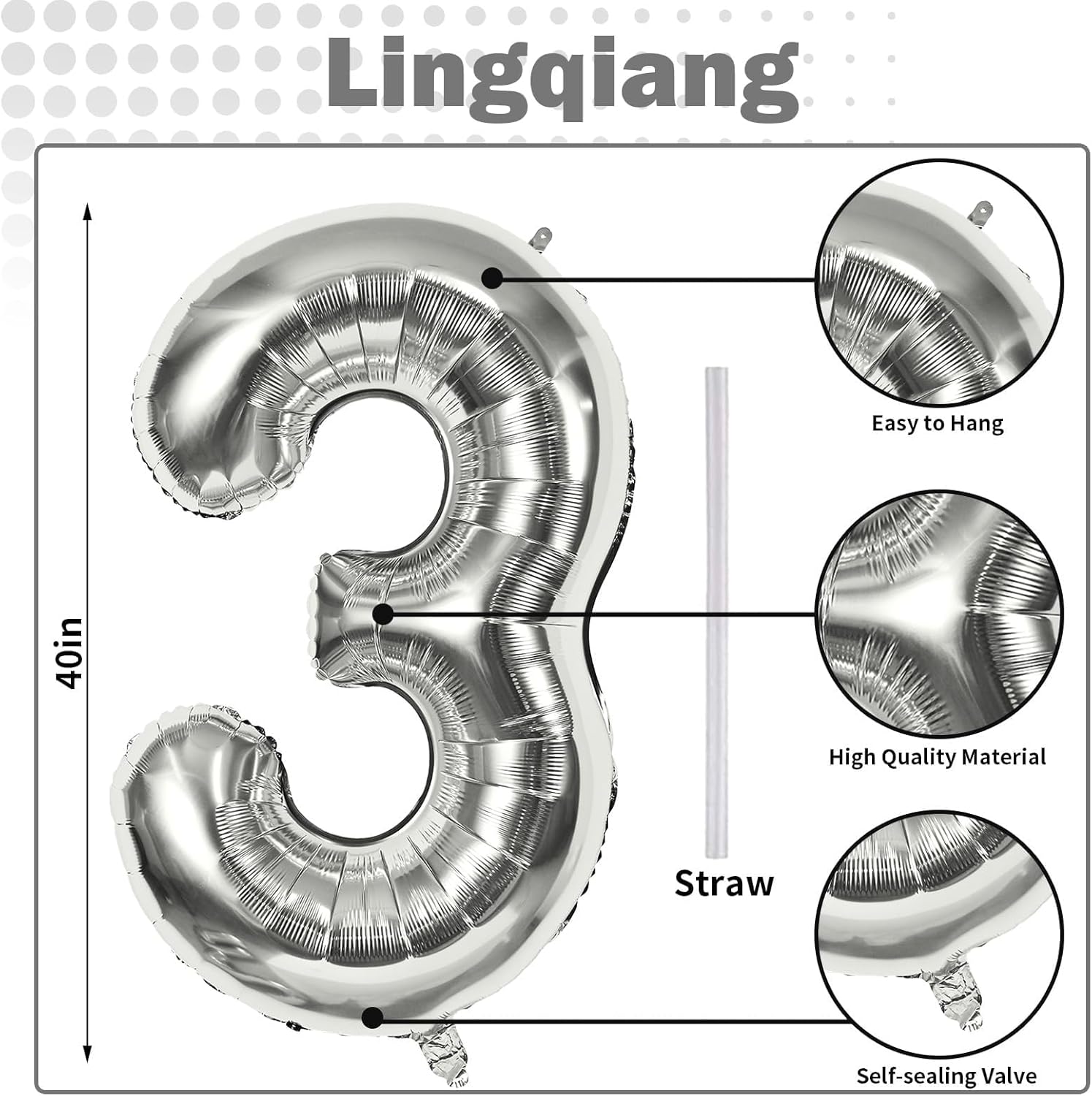 - π Silver Number 3 Balloon π - You will get 1pc 40 inch mylar foil number 3 balloon and 1pc straw. Perfect for 3rd 13th 30th 35th birthday or anniversary party decorations supplies.