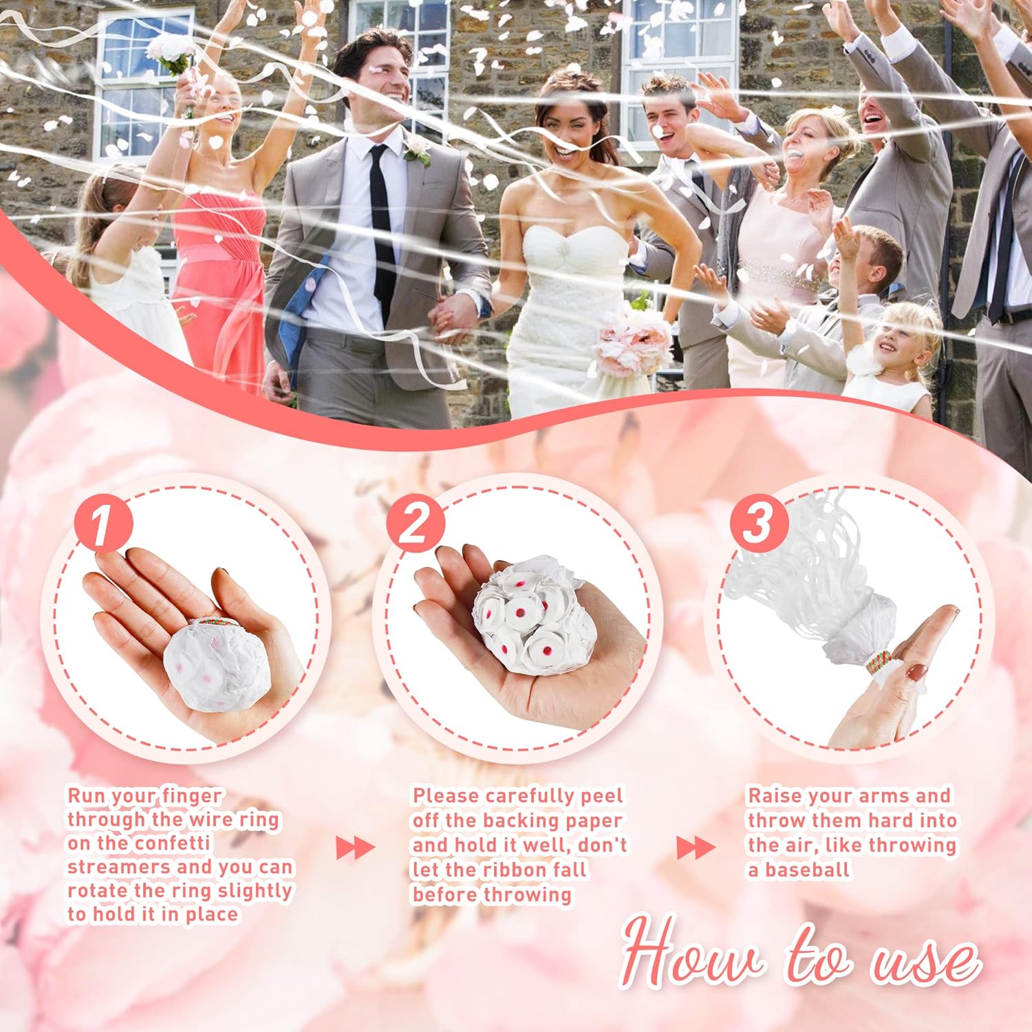 - 48 Pack/30 Ribbons/17 FT:Contains 48Pack white confetti poppers.Each party poppers ribbons with a total of 30 thin ribbons,the length can reach 17 FT, invite guests to throw ribbons together!Perfect for creating a wedding outlet