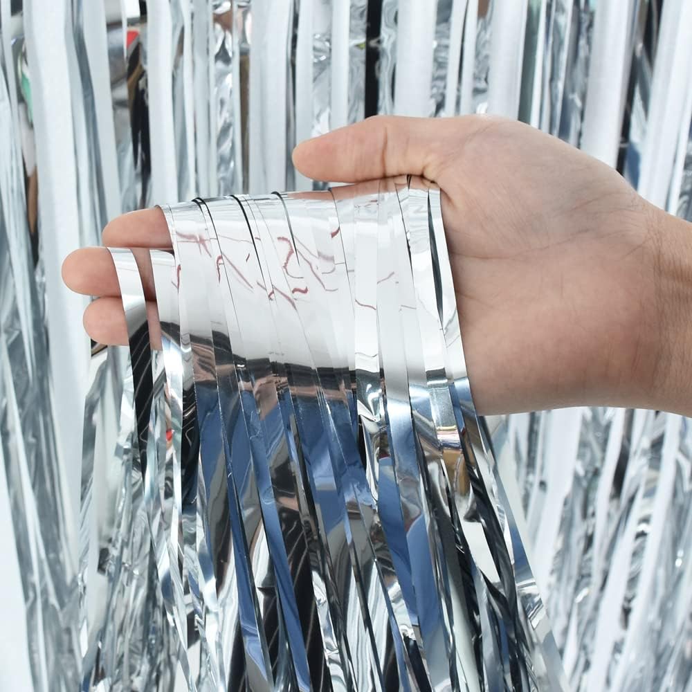 - TINSEL MATERIAL: The foil curtain backdrop is made of tinsel with shiny surface,lightweight and resistant metallic fringe curtains.