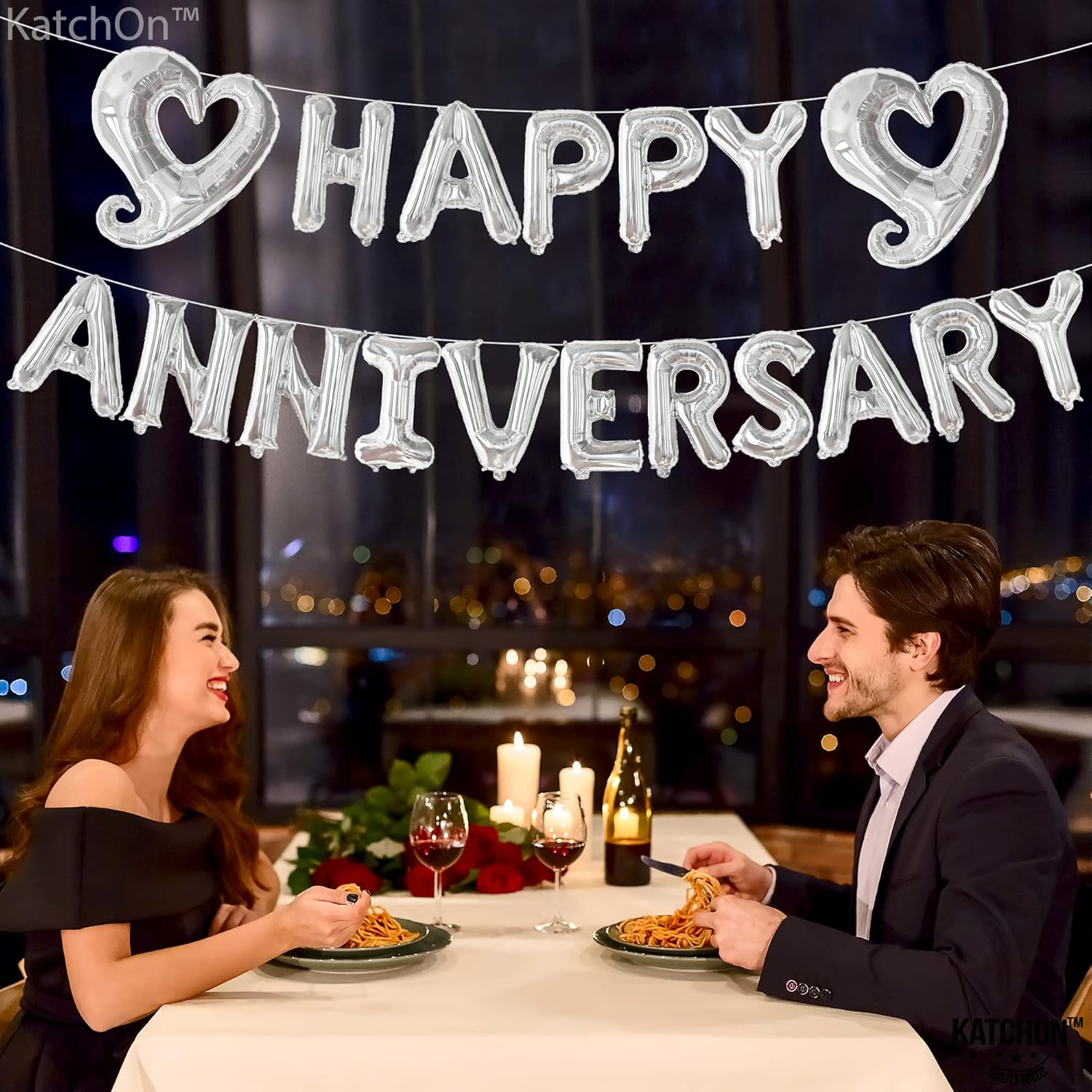 KatchOn, Silver Happy Anniversary Balloons Letters - Big, 18 Inch | Silver Happy Anniversary Balloon Banner | Heart Balloons