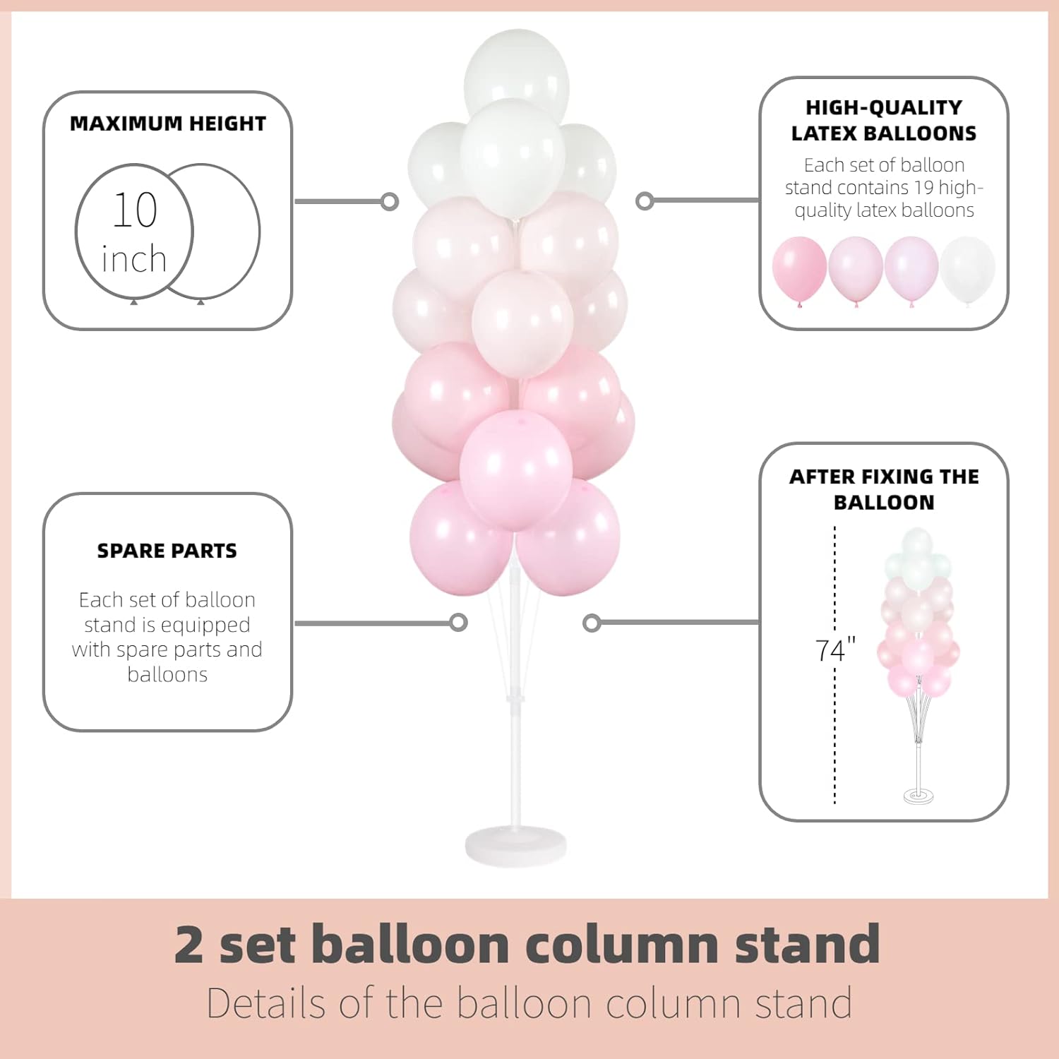 - COMPLETE SET FOR TWO BALLOON STAND - Balloon stand kit includes everything you need to build 2 set balloon stand,each kit includes 38 quality balloons (4 colors),each stand is 74" in height when fully assembled and can be customized as needed.