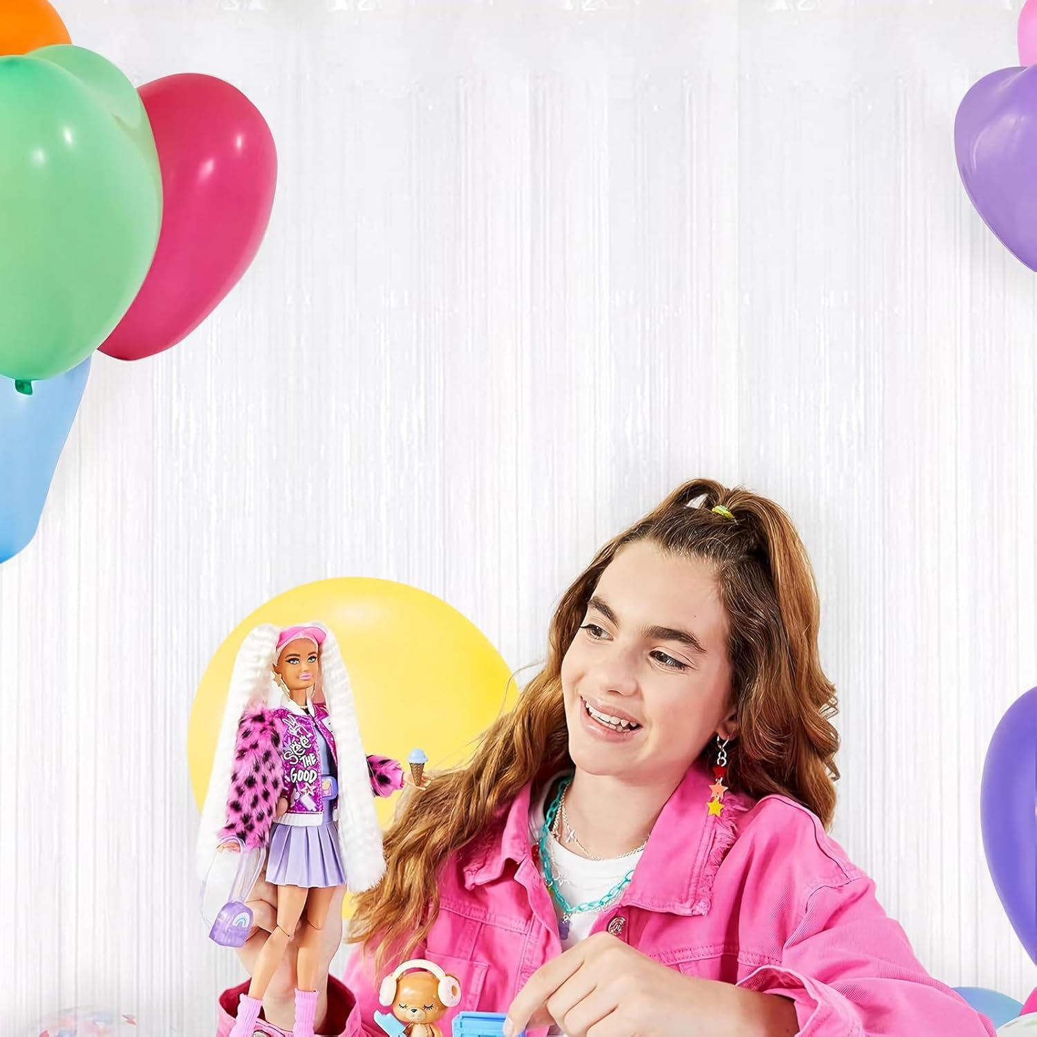 5 Pack White Fringe Foil Curtain 3.2ft x 8.2ft Tinsel Backdrop Streamers for Birthday Party Decoration Wedding Christmas