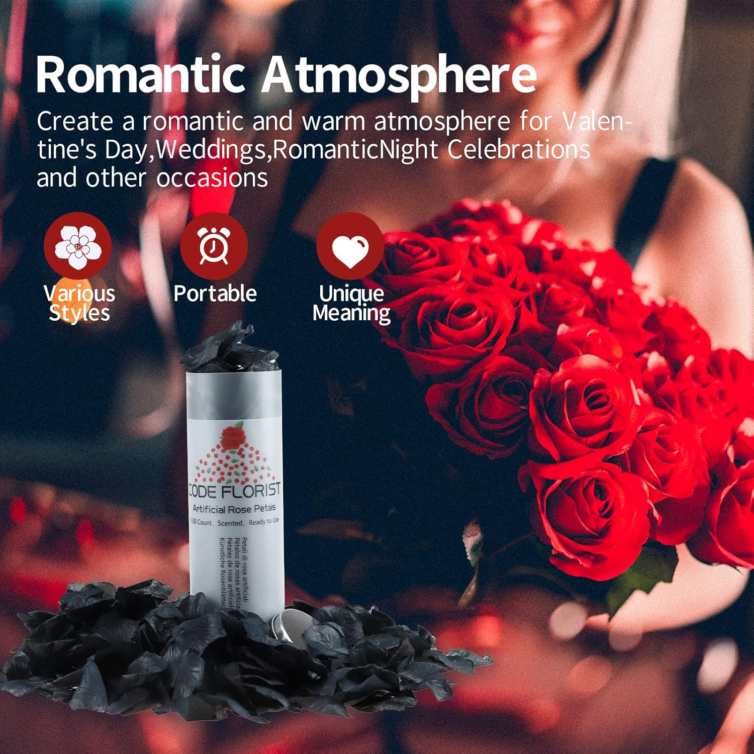 CODE FLORIST 1100 PCS Black Silk Rose Petals for Valentine's Day,Romantic Night,Wedding,Proposal Anniversary Flower Decorations(Separated,Scented)