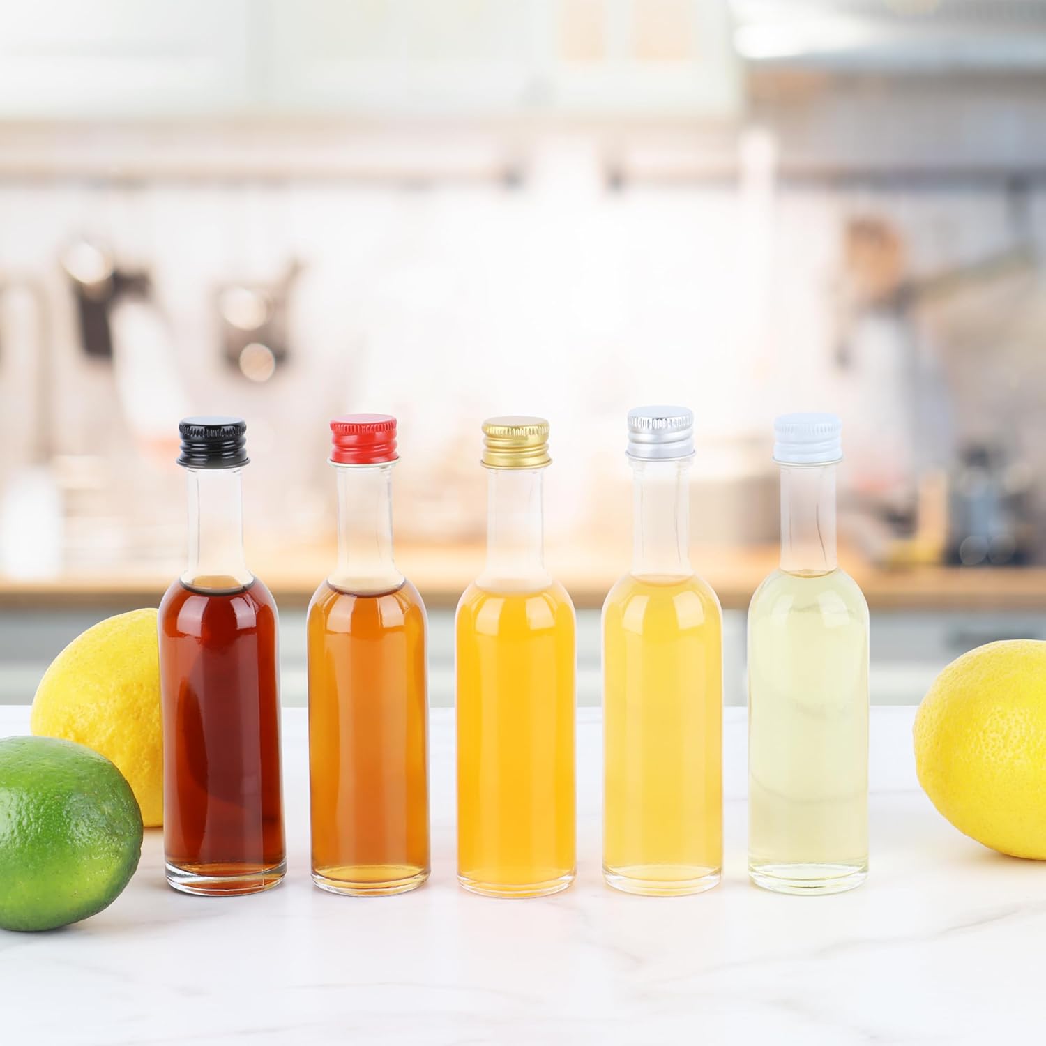 50 ml (1.7oz) 24 Pack, Mini Small Glass Bottles With Leak Proof Air Tight Gold Caps, Aluminum Lids, For Liquor Wine Alcohol Ginger Shots SamplesTequila