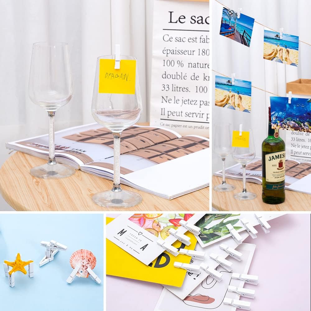 - Value Set: 130pcs white mini wooden clothes pins in comfortable design and gentle color(1.4 x 0.3 x 0.4 in). NOTE: These Mini clothespins are NOT for hanging laundry or clothing.