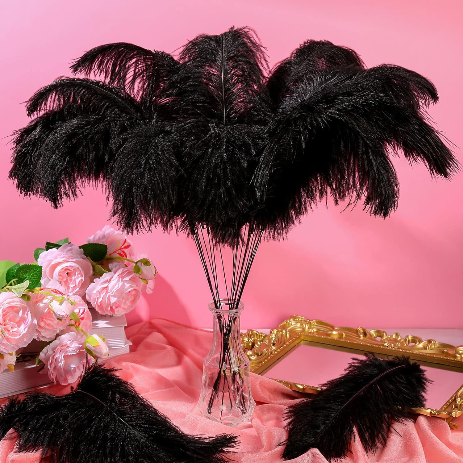 - What You Will Get: you will receive 70 pieces of black ostrich feathers measuring about 12-14 inches in length, 80 pieces of wires about 10 inches in length and 1 roll of tape of about 49 ft in length, sufficient quantity and content to meet your decoration and crafting needs; Natural ostrich feathers may vary in size