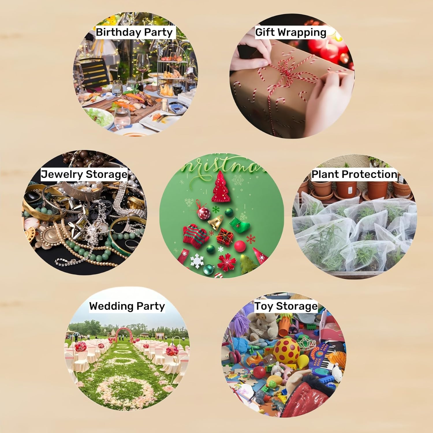 - WIDE APPLICATIONS: These organza bags can be used for storing food, packing gift, travel storage, and keeping some items such as snacks, cream jars, jewelry, coins, candy at parties, shipping hardware or other small metal parts. You can store daily essential.