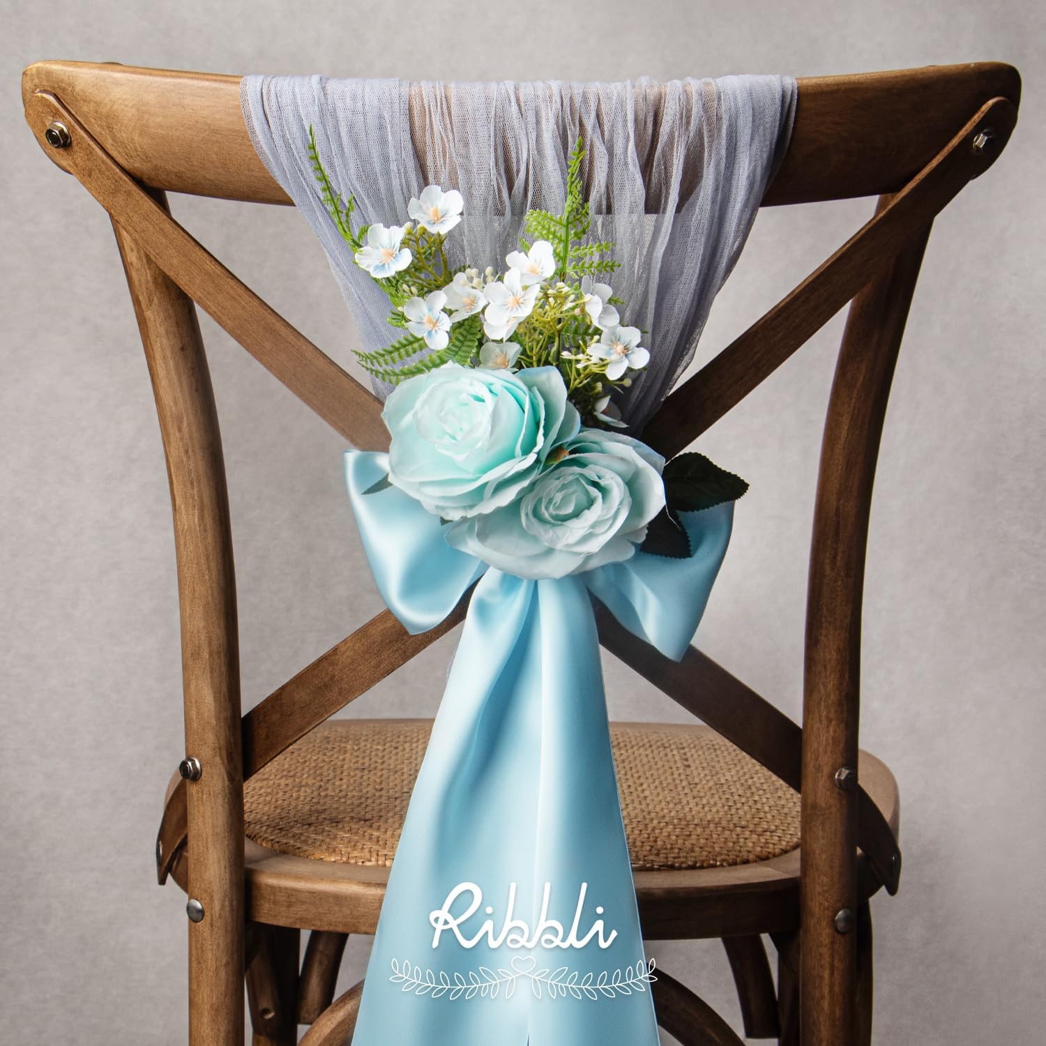 Ribbli Light Blue Satin Ribbon 4 Inch Wide Baby Blue Ribbon for Wedding Chair Sash Grand Opening Ceremony Big Bows Gift Wrapping Floral Crafts Cake Decor-Double Faced Satin Continuous 10 Yards