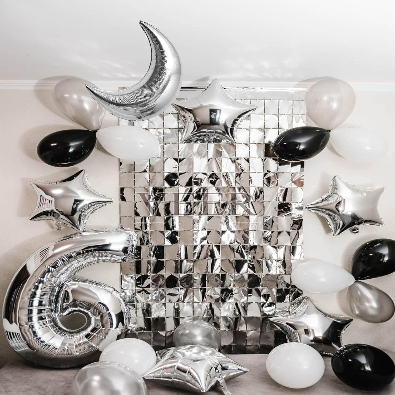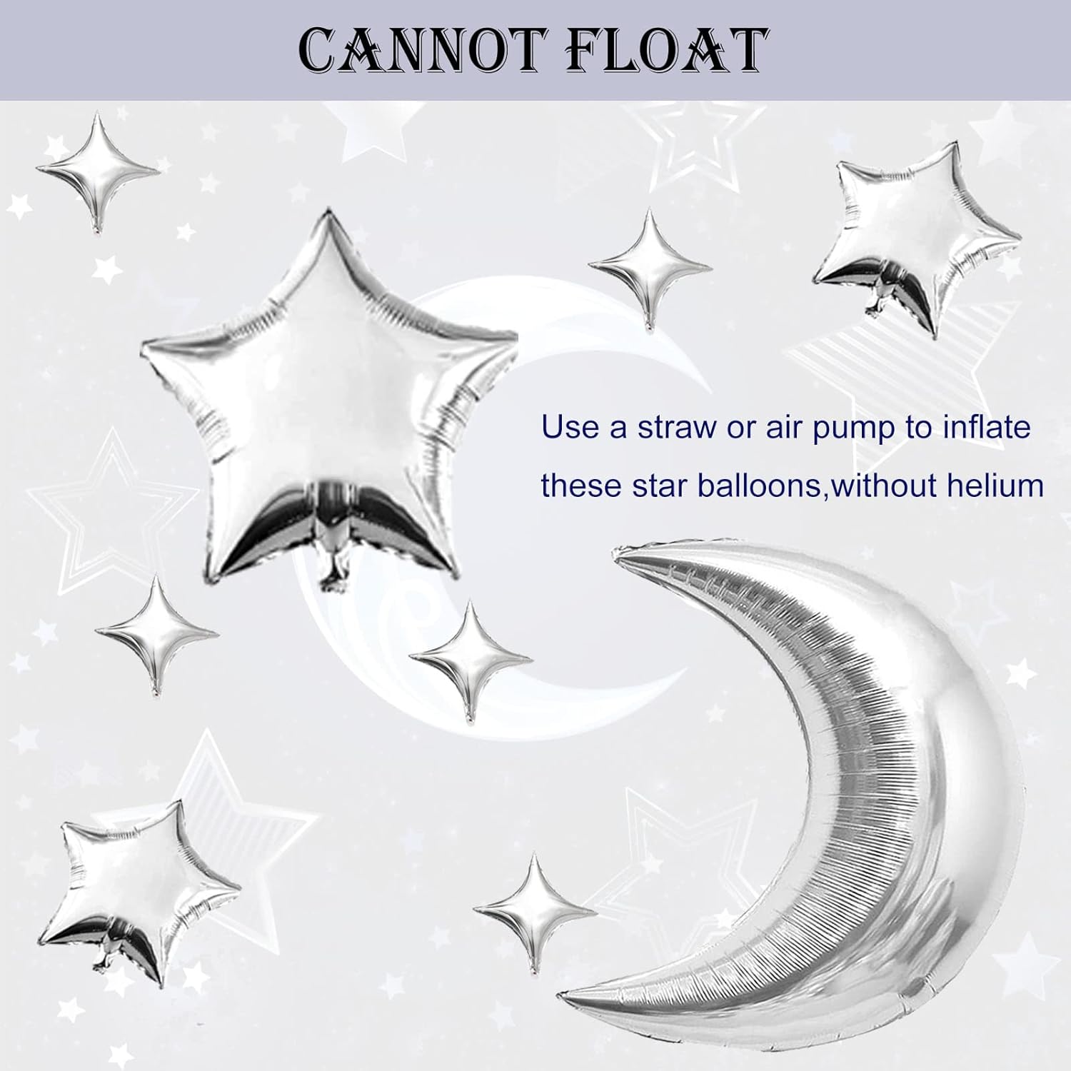 - ăQuality MaterialăThe silver moon and star balloons are made of high quality aluminum foil, which is sturdy and durable, not easy to leak gas or break during inflating. And you can also use a straw inserted into the inflation port to deflate the air or helium for next time to use.