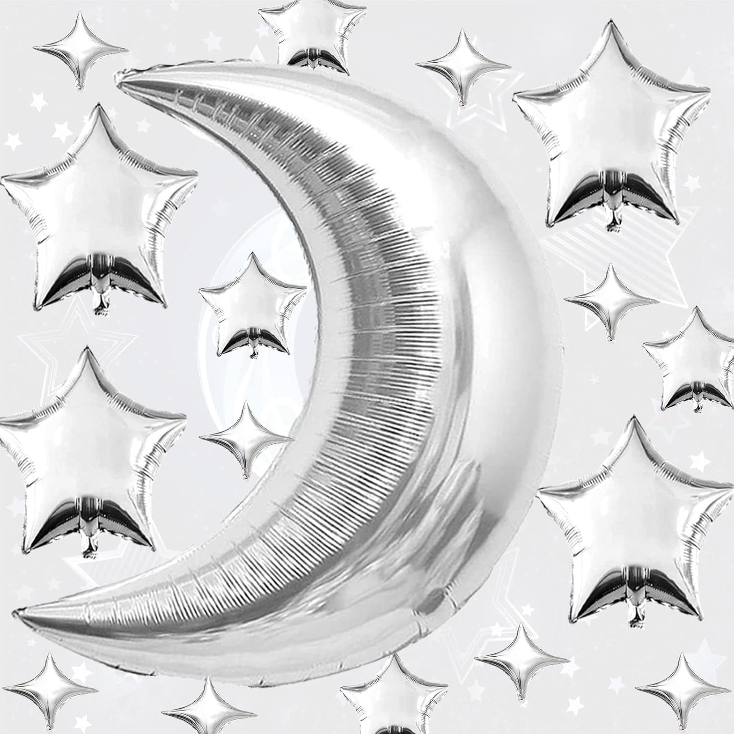 - Included Components : 2pcs 36 inch moon foil balloons, 4pcs 18 gold star mylar 20pcs 10 four pointed 1 roll ribbon, 3 piece balloons glue points 2pcs 36 inch moon foil balloons, 4pcs 18 gold star mylar 20pcs 10 four pointed 1 roll ribbon, 3 piece balloons glue points