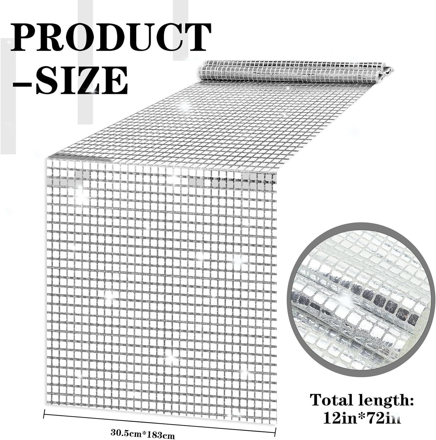 12 x 72 Inches Glitter Disco Table Runner - Retro 70s 80s Theme Decor - Silver Sequin - Bachelorette & Wedding Party Supplies
