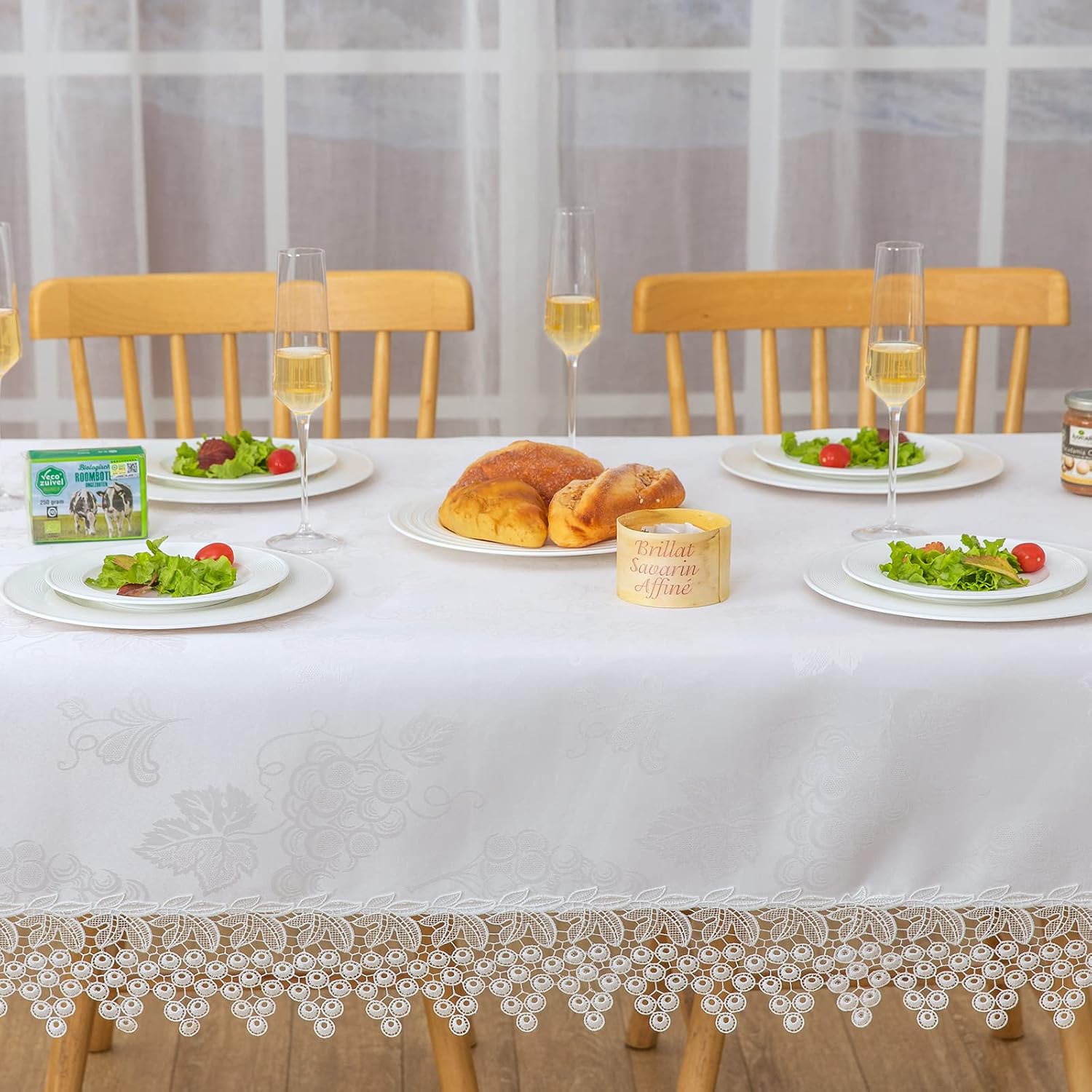 White lace Premium Rectangle Farmhouse Table Runner Waterproof OilProof SpillProof AntiShrink Soft Wrinkle Resistant Decorative Fabric Table Cover Kitchen Dinning Party Wedding Banquet