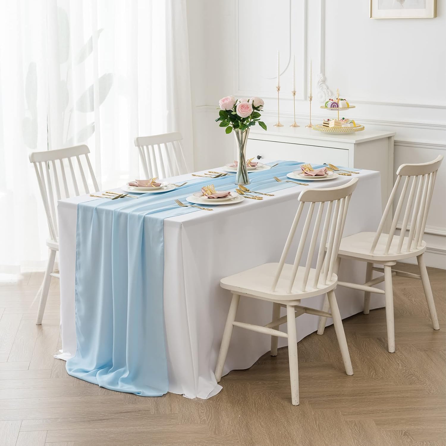 12Pack 9ft Chiffon Table Runner 14x108 Inch Sheer Romantic Table Runner for Wedding Birthday Party Bridal Shower Outdoor Decoration-Blue Mist