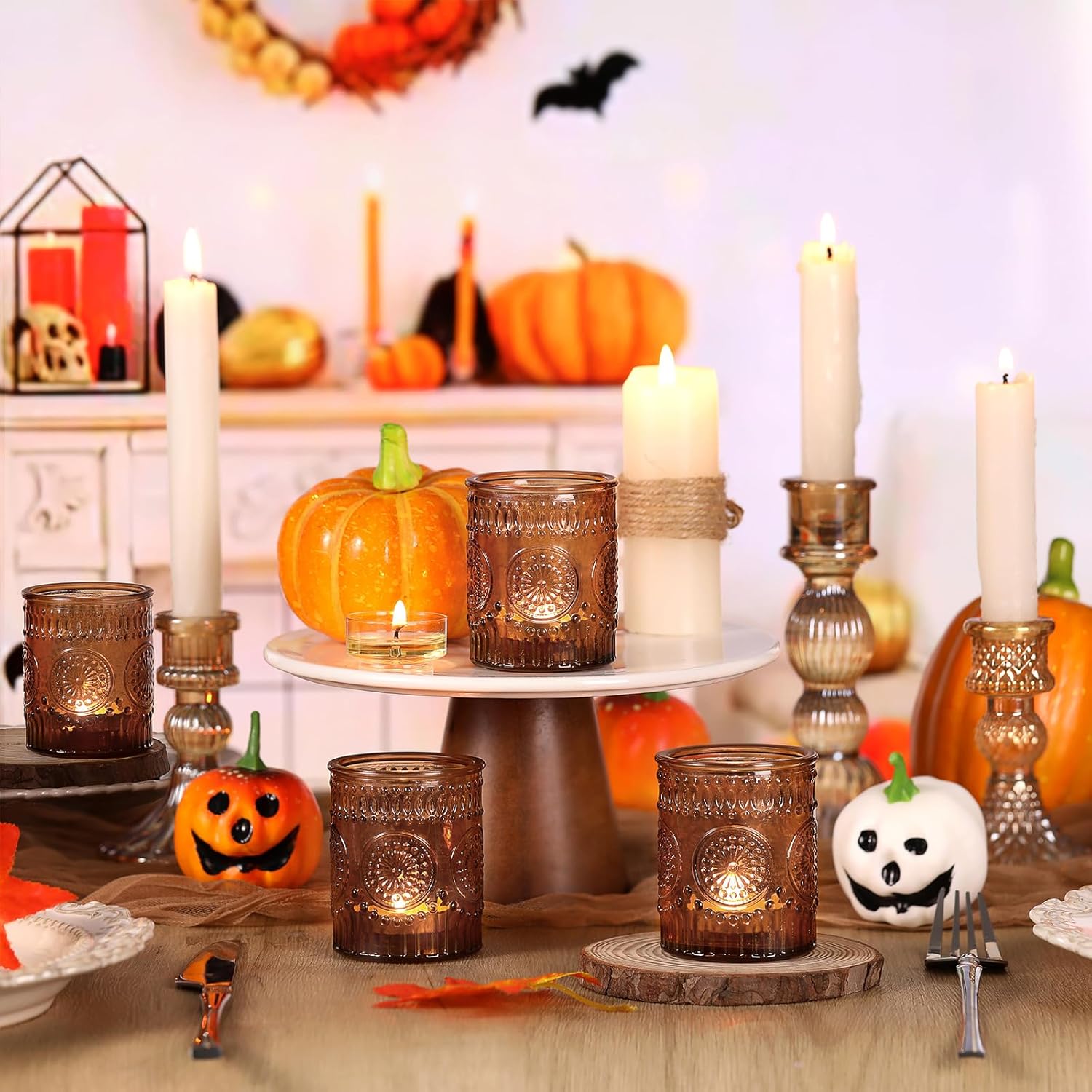- ❤️❤️[ Votive Candle Holders Set ]❤️❤️: You will get 36 pack amber votive candle holders in your package, measuring 2.1ʺ diameter and 2.56ʺ height approximately, can be used with regular votive candles, tea light candle, and flameless LED tea waxes less than 1.5" in diameter.(Candles Excluded). These glass votive candle holders are the perfect complement to any dining table, which can be used with regular votive candles, tea light candles, flameless LED tea waxes, and edible butter candles, creating a warm and inviting ambiance that enhances the dining experience.