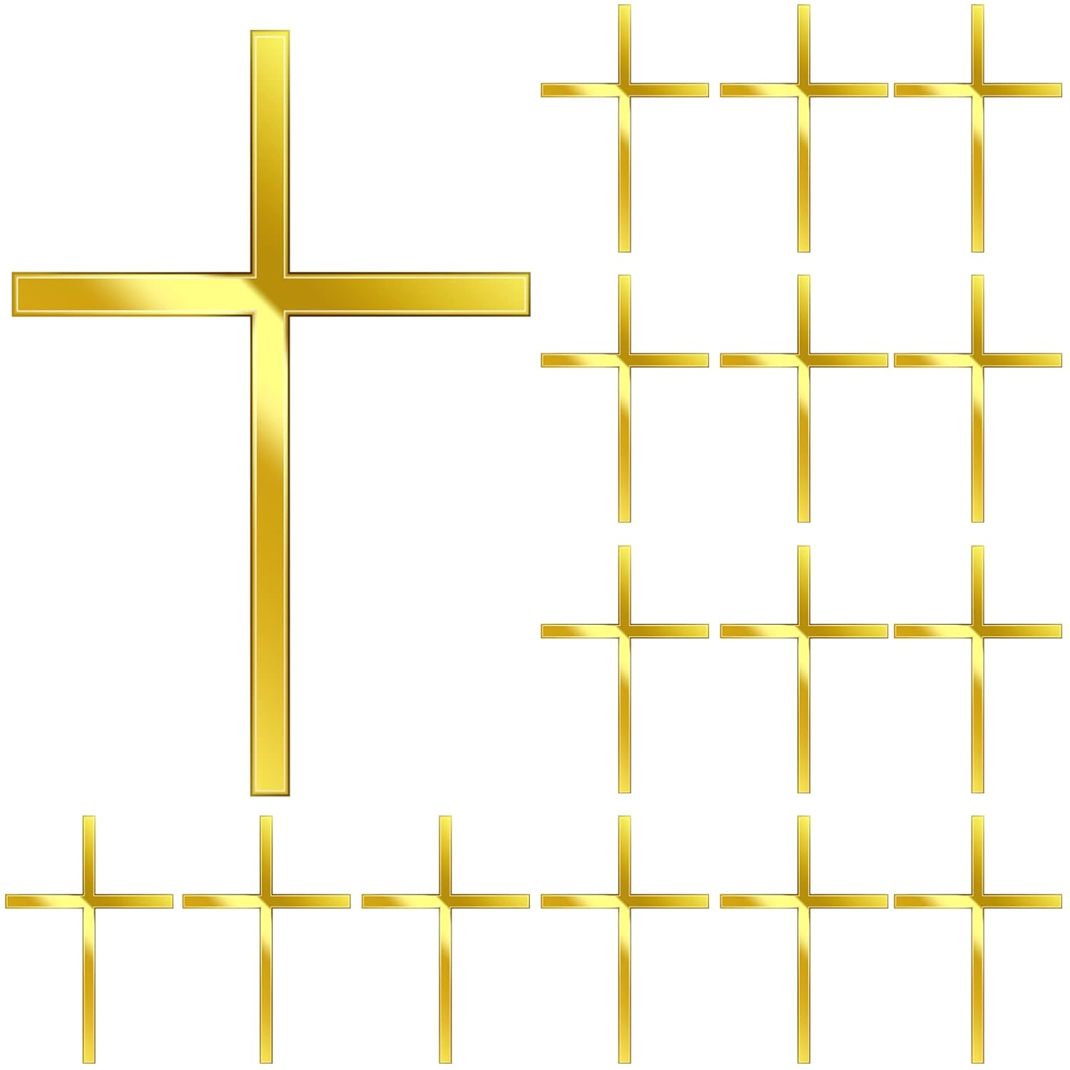 Blulu 16 Pieces Baptism Cake Toppers Crossing Cupcake Toppers Gold Mirror Acrylic Cake Picks Baptism Decor Christian Decorations(Elegant Style)