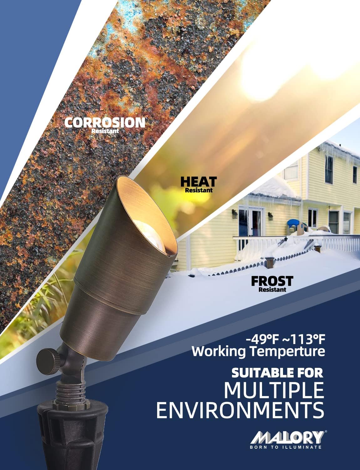 - LIFETIME WARRANTY:MALORY landscape lighting are built to the highest standards of construction and performance, we extends an industry-best lifetime warranty on its brass fixtures and 50,000 hrs for the LED bulbs.Please contact us if you have any issue, we will offer top rated customer service for you.