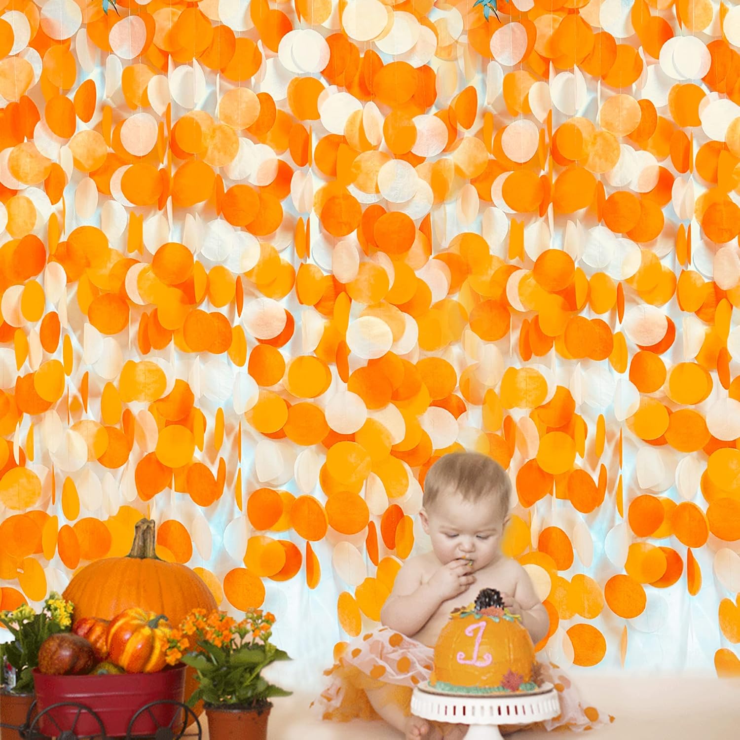 205 Ft Orange Party Decorations Big Circle Dots Backdrop Garland Ombre Orange Tissue Paper Polka Dot Hanging Streamer for Birthday Engagement Wedding Fall Autumn Thanksgiving Harvest Party Supplies