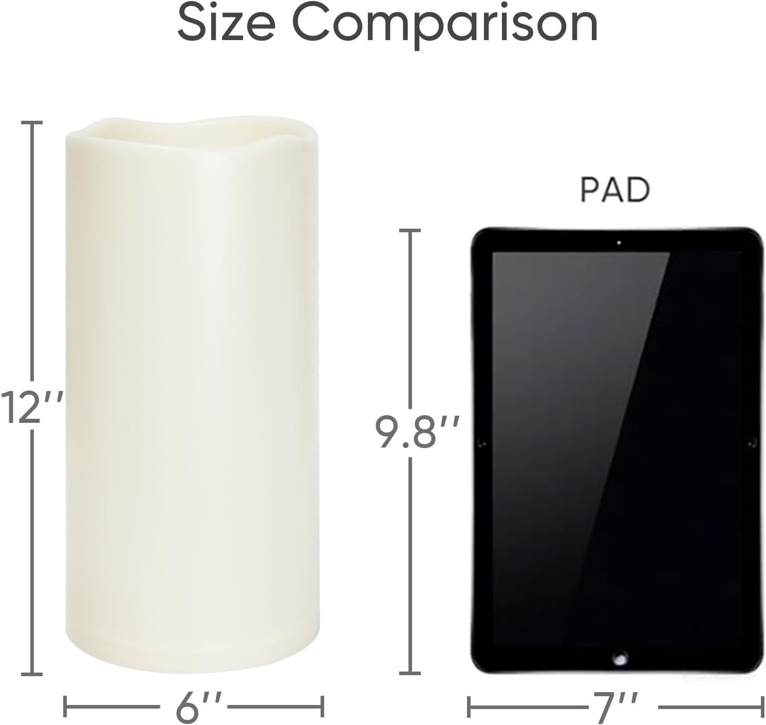 Homemory 6" x 12" Extra Large Outdoor Waterproof Candle with Auto 6-Hour Timer, Ivory Plastic Made, Long Last for Half A Year