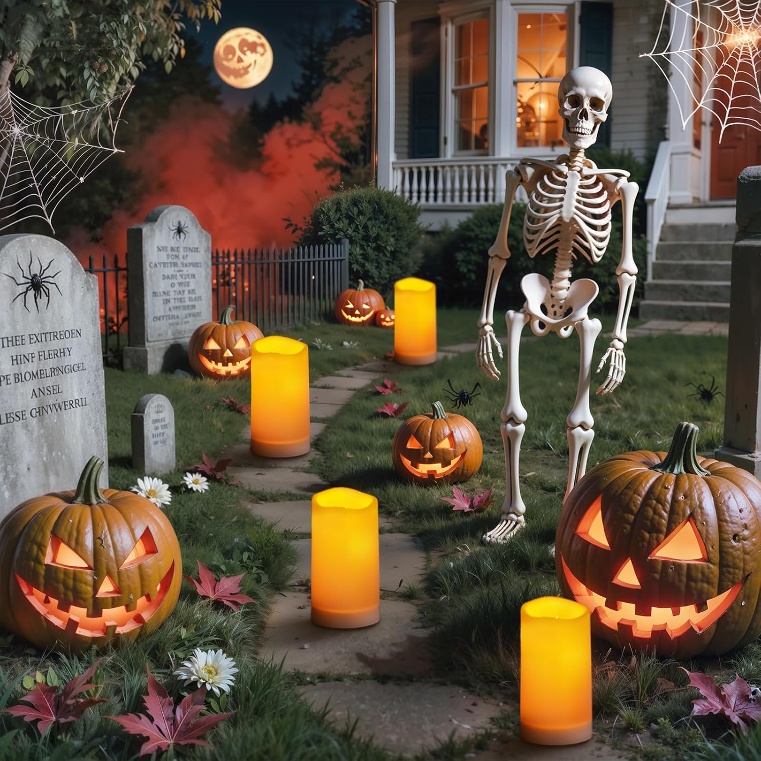 - Bright and Long-Lasting: LED bulbs of the outdoor candle emit a bright warm yellow light, the glow flickers slightly like natural candlelight. Each LED candle requires 3 x D batteries (not included). Using advanced batteries, these battery candles can light up for half a year(Auto 6H timer).