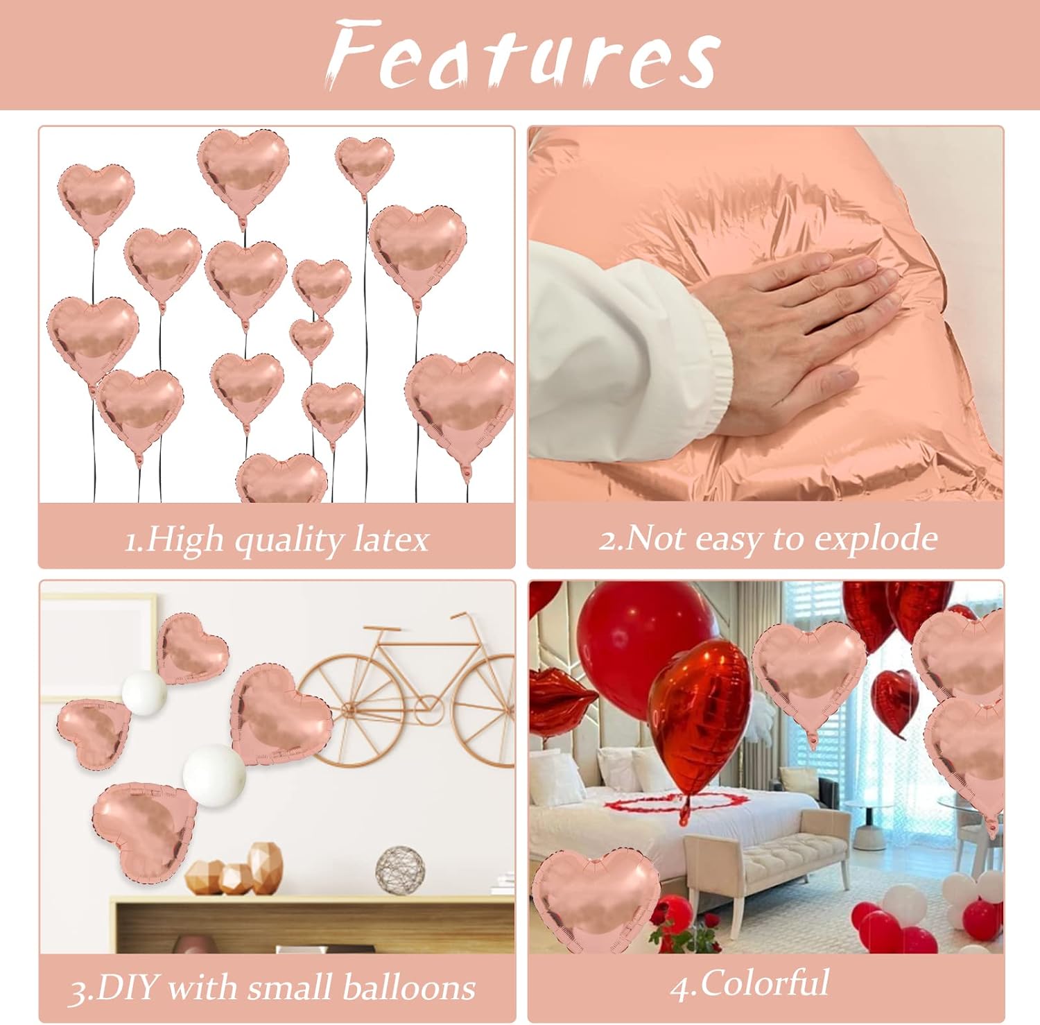 - π Versatile Decoration: Our rose gold heart balloons are perfect for a wide range of celebrations, including boy's and girl's birthday parties, baby showers, Valentine's Day decorations, wedding parties, bridal showers, princess parties, anniversaries, and more. They are perfect for balloon bouquets, home and table decor, wedding aisle decoration, photo backgrounds, party supplies, and other events.