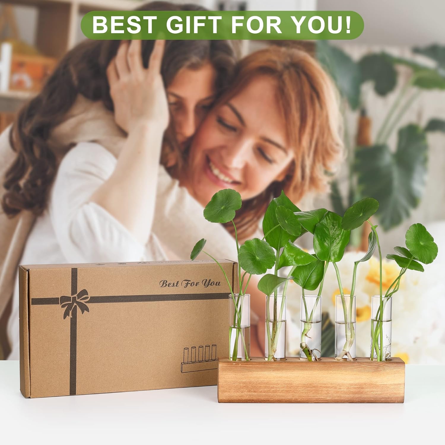 YIBOT Propagation Stations, Plant Terrarium with Wooden Stand, Birthday Gardening Gifts for Women Mom Plant Lovers,Home Office Desk Decor, 5 Glass Test Tubes Vases