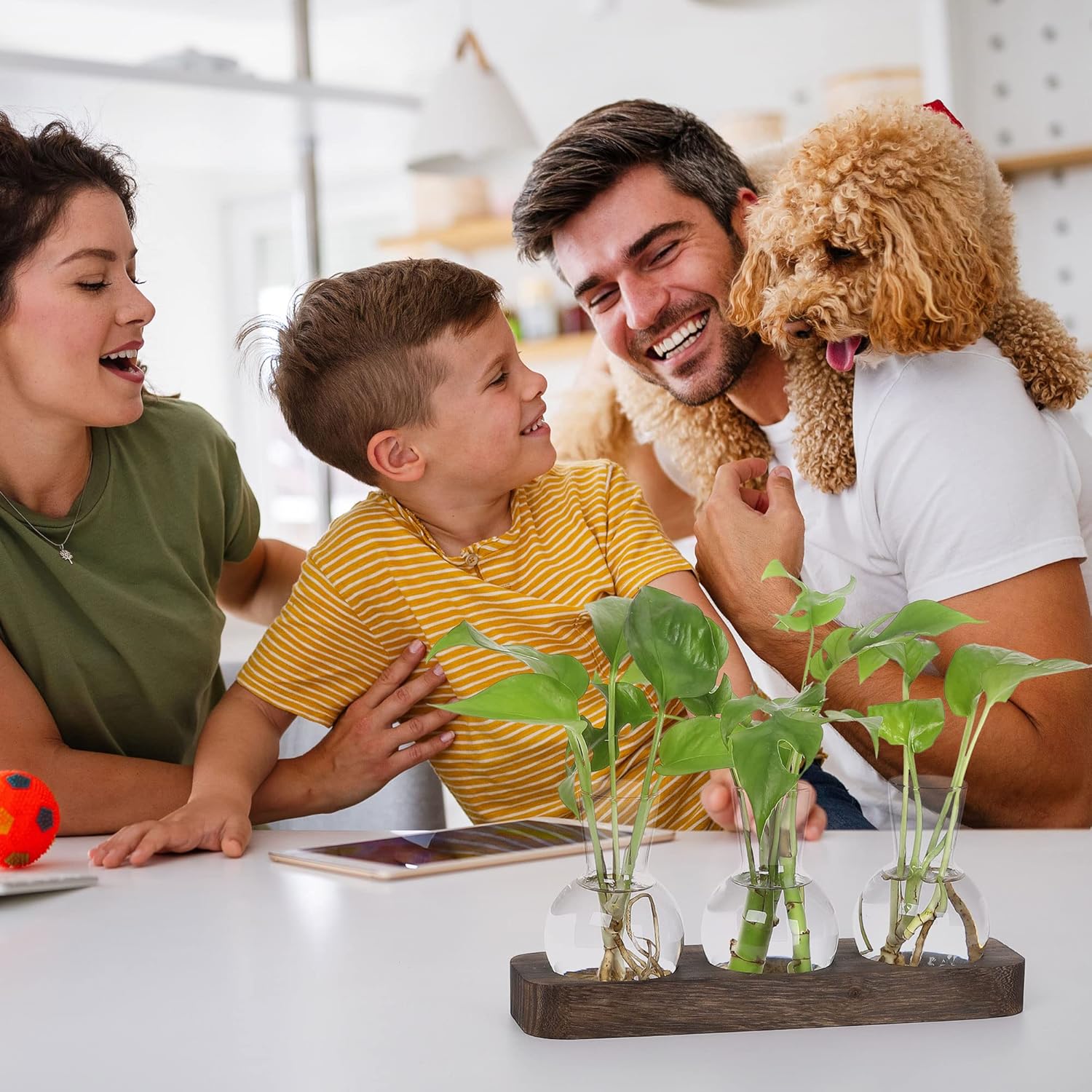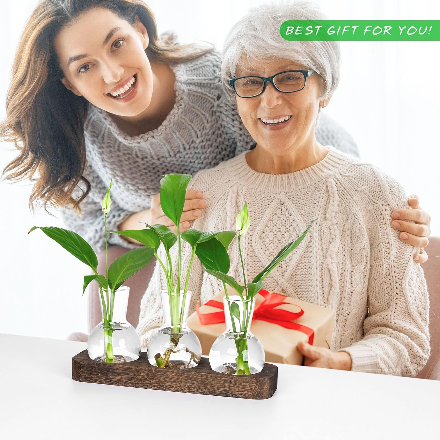 YIBOT Propagation Stations,Plant Propagation Vase,Desk Plant Terrarium with Retro Wooden Stand,Plant Lover Gifts for Women for Hydroponics Plants Home Garden Wedding Decor(3 Vase)