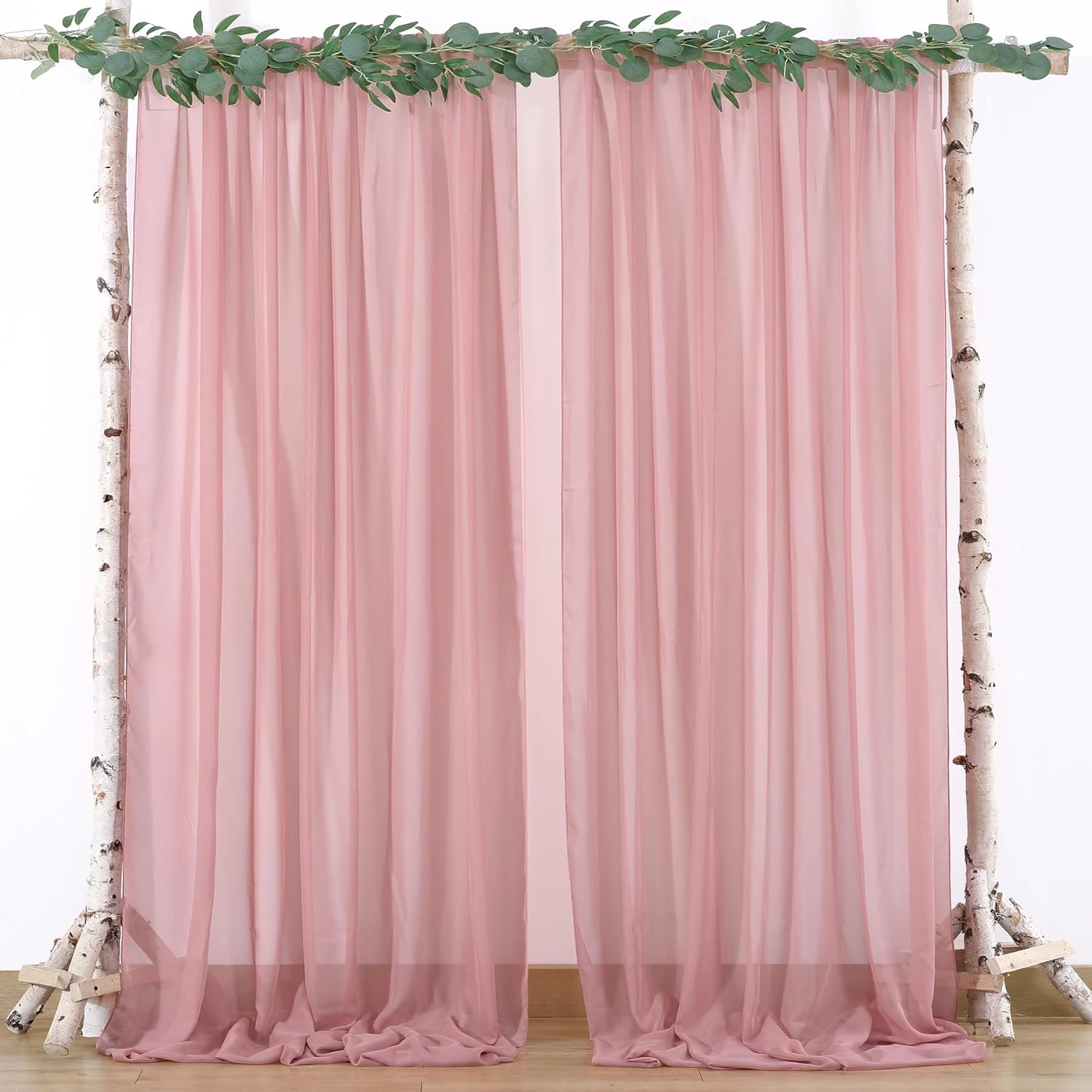 PARTISKY 10ftx10ft Dusty Rose Chiffon Sheer Backdrop Curtains, Wrinkle-Free Wedding Backdrop Drapes for Birthday Party Ceremony Arch Stage Decor Background for Photography 5ft x 10ft,2 Panels