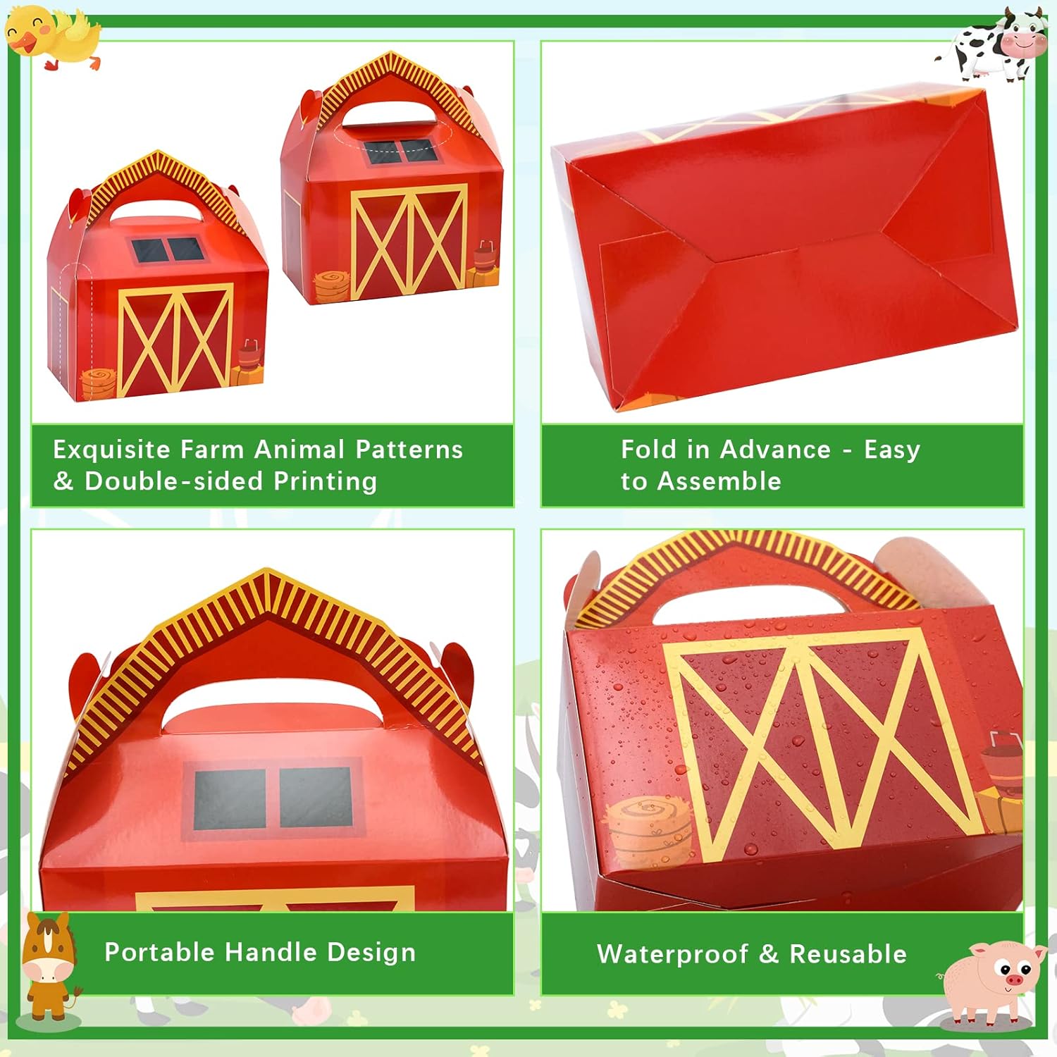 - Premium Material - These farm party treat boxes are made of high-quality cardstock, well printed, lightweight and portable, sturdy, and not easy to tear, with a reinforced bottom for long-term use.