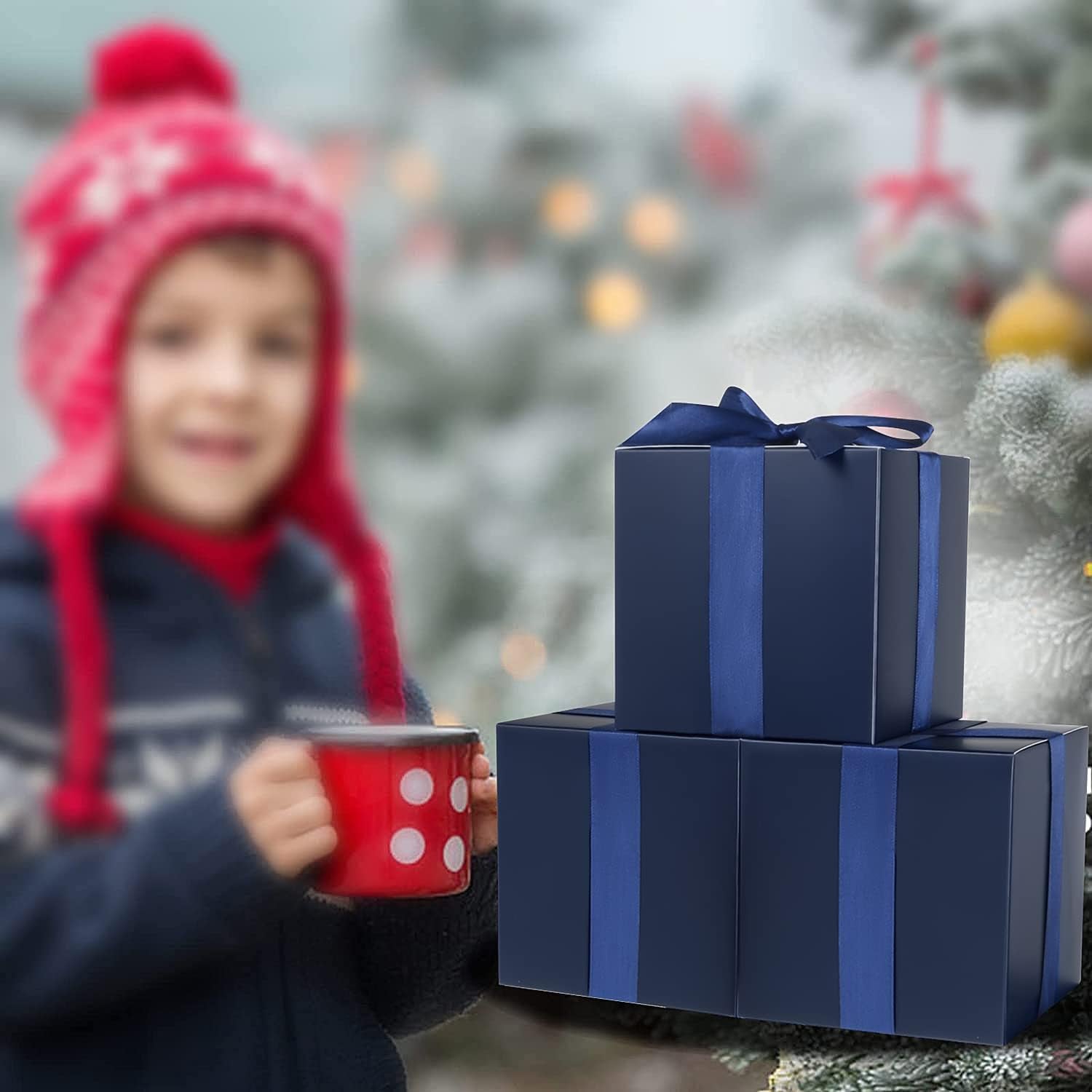 COTOPHER Small Gift Boxes 25 Pack 5x5x5 inches Blue Gift Boxes with Lids for Gifts, Crafting, Wedding Party Favor, Cupcake Boxes, Candy, Bridesmaids Proposal Box with Ribbons and Stickers