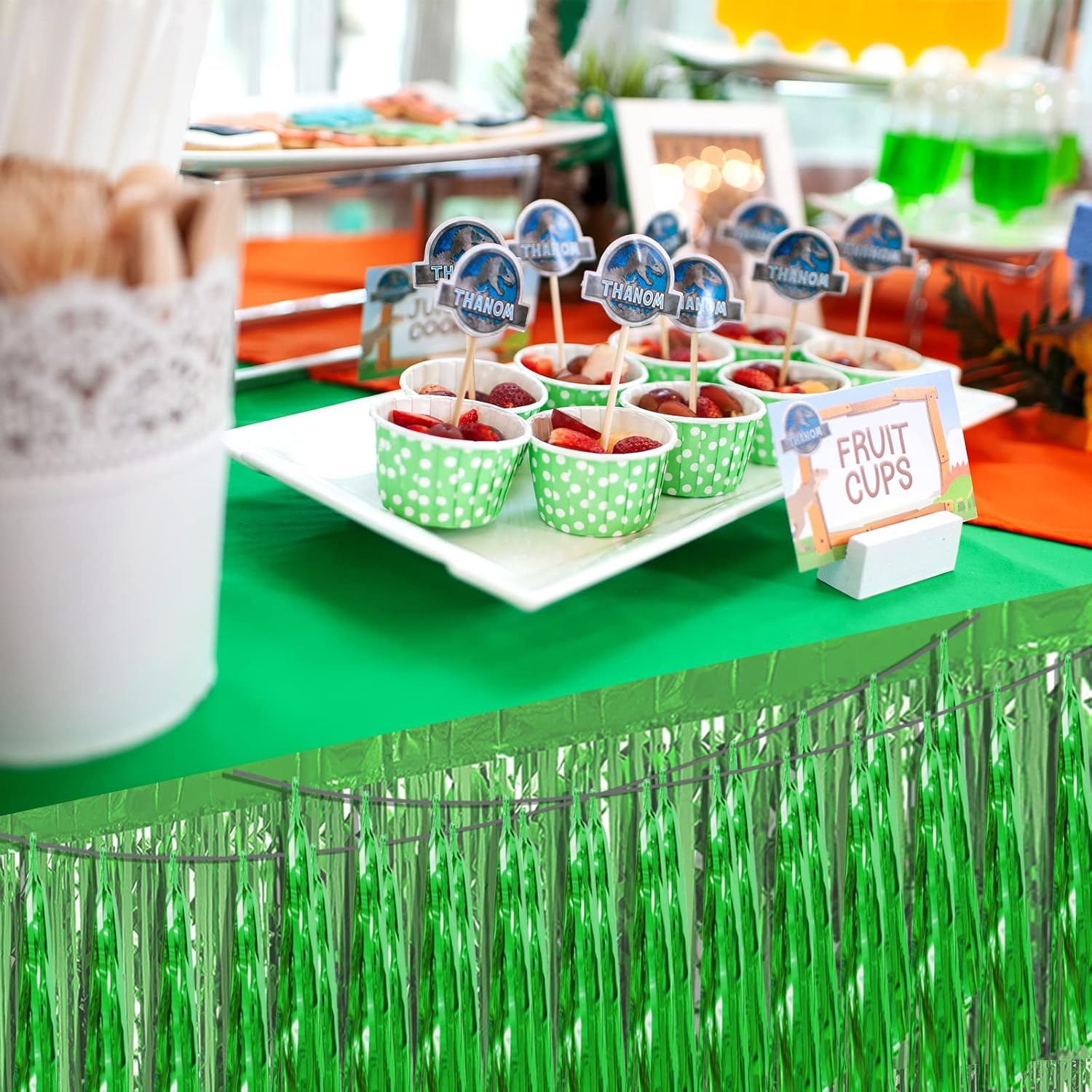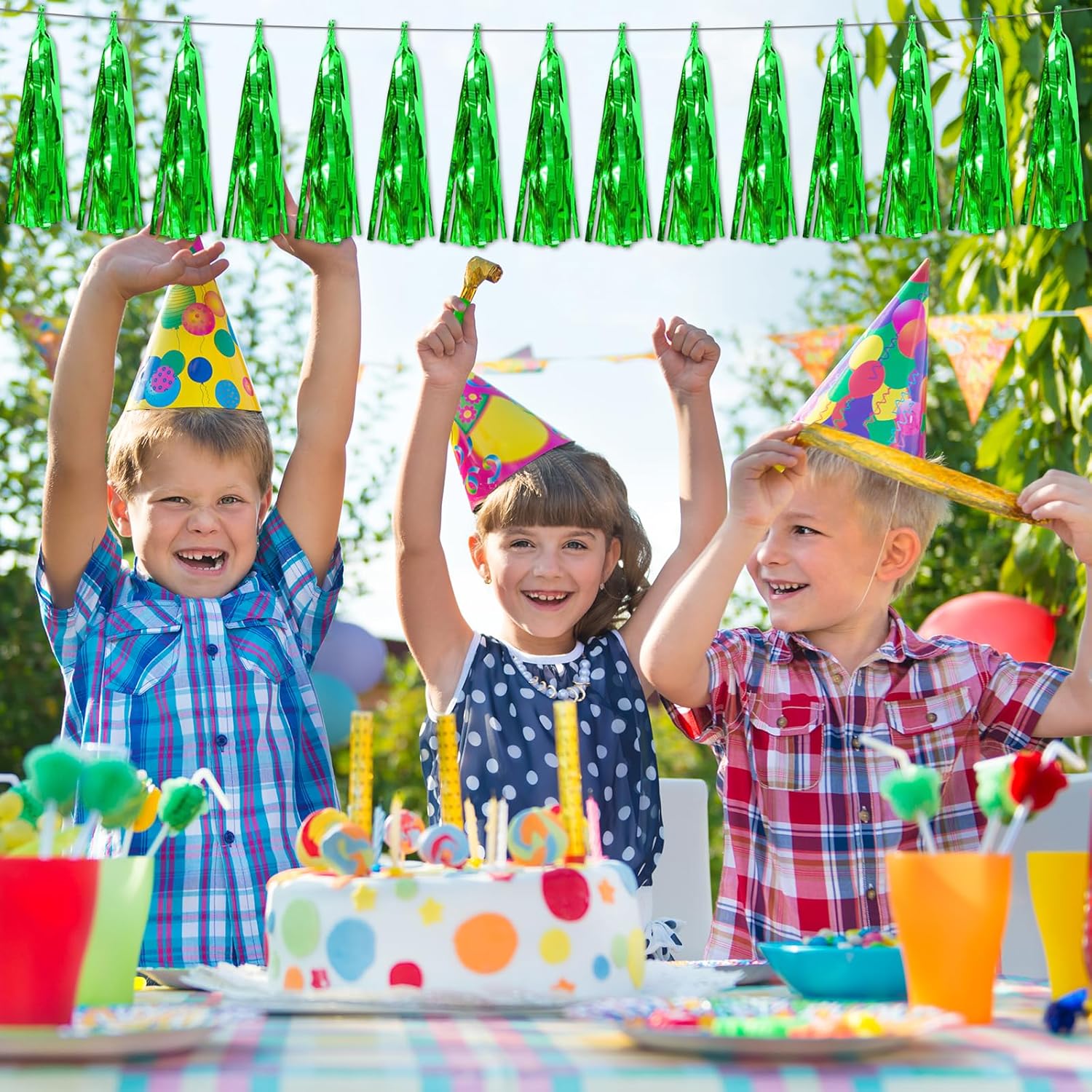 - 【Green Party Supplies Set】: The total length of the green birthday tassels banner is 26.2 feet, divided into 4 strips, each 6.5 feet long. Each banner contains 15 tassels, and each tassel measures 14 inches, for birthday decorations many occasions, and so on