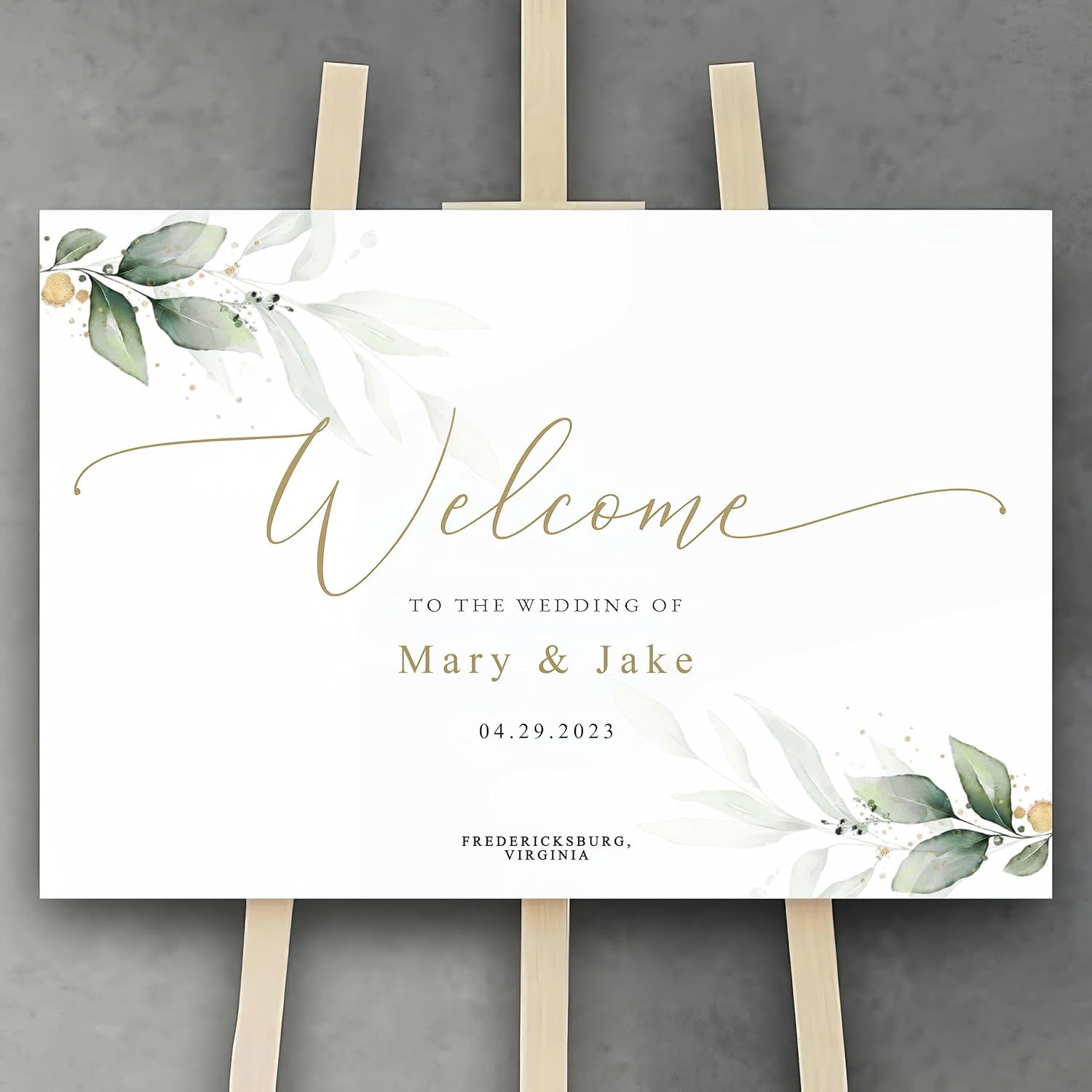 Boho Wedding Welcome Sign, Greenery Welcome to Our Wedding Sign, Eucalyptus Wedding Sign
