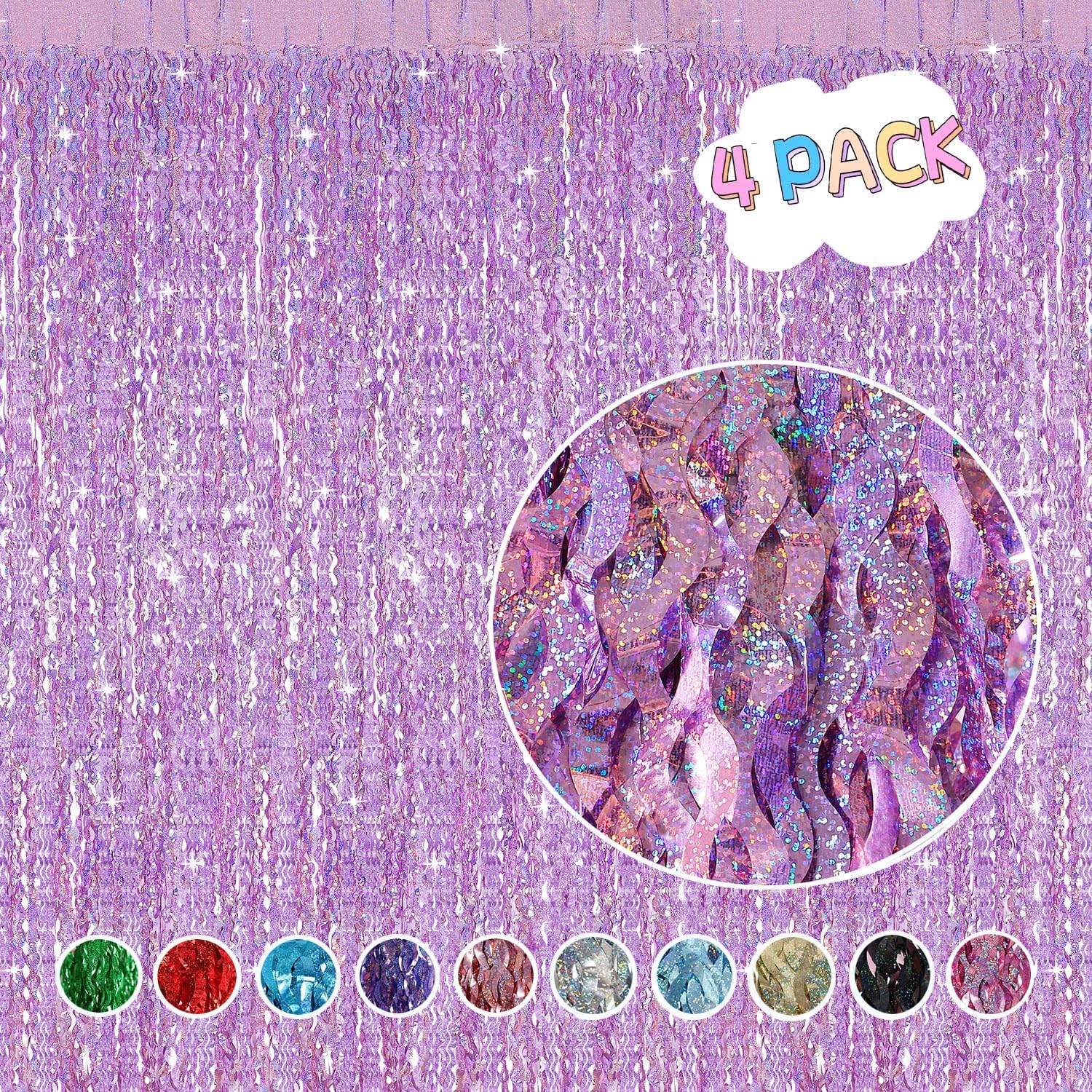 4 Pack Pink Tinsel Curtain Party Backdrop - CYLMFC 3.3 ft x 6.6 ft Sparkle Wavy Foil Fringe Backdrop Curtain for Party Decorations Girls Birthday Bachelorette Party Decor Supplies Photobooth Props