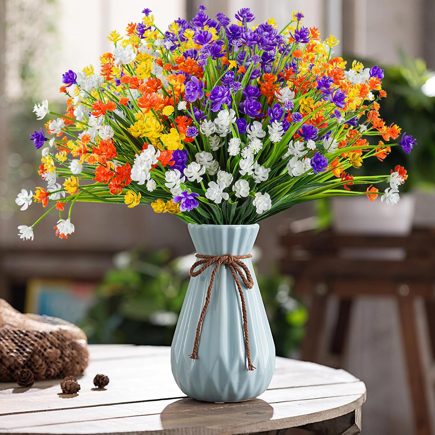 - Maintenance Free - Upscale look artificial flowers are perfect for any landscaping project or decor style without having to worry about sunlight, watering, pruning, or other maintenance. They can be used to decorate gardens, weddings, parties, windowsills, offices, etc. To make your living environment full of vitality
