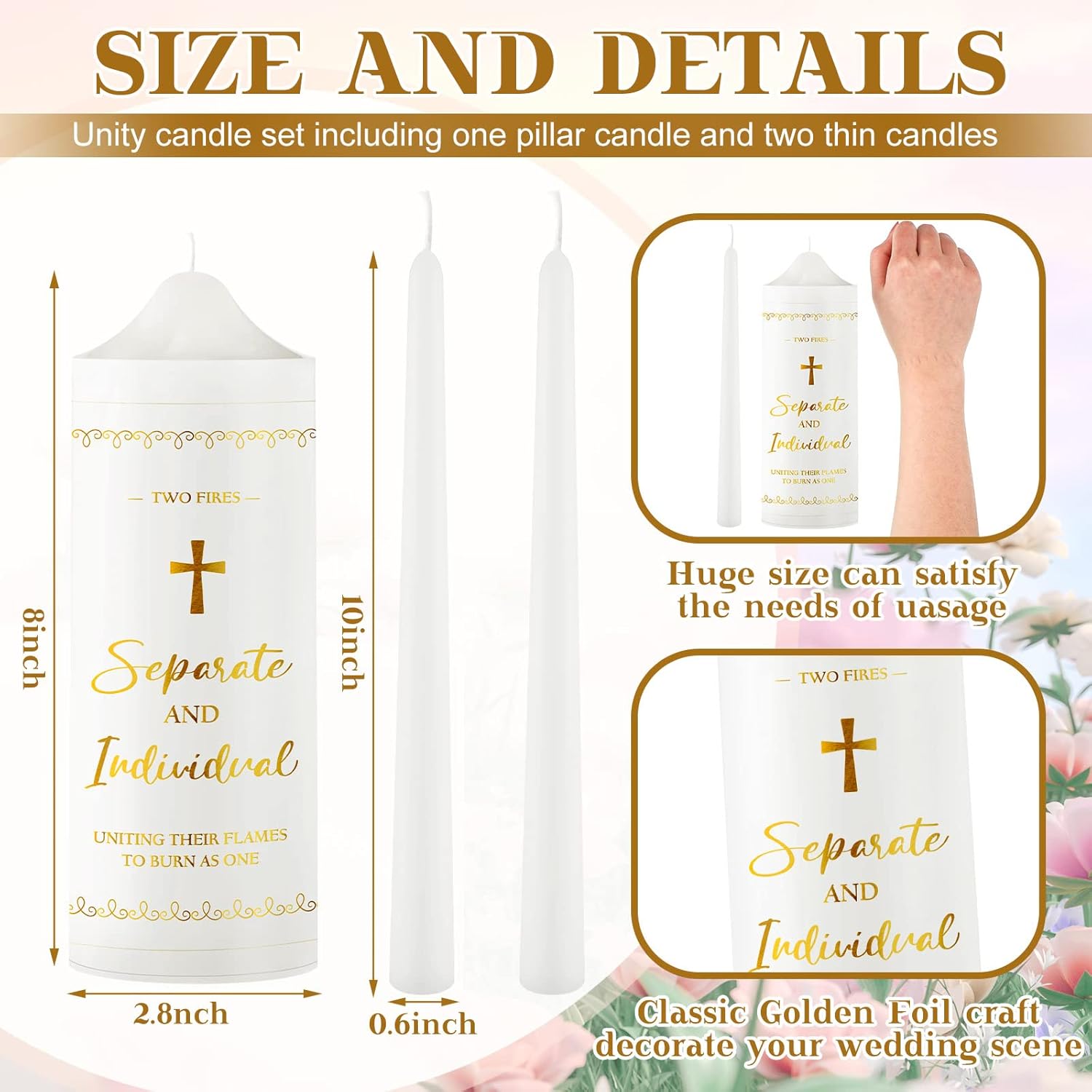 - You Will Get: the set consists of 3 wedding candles, 2 pcs of 10 inches high, and 1 pc of 8 inches high, which can have a long burning candle, suitable for the wedding table centerpiece; Special instructions: the products not include candlesticks