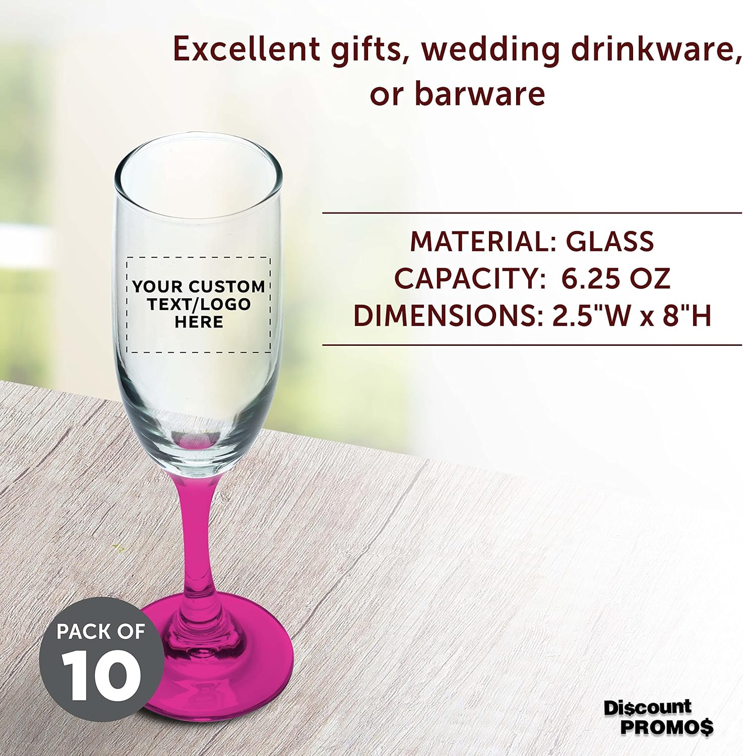 DISCOUNT PROMOS Custom Premiere Champagne Flutes 6.25 oz. Set of 10, Personalized Bulk Pack - Elegant Drinkware for Weddings, Events, & Promotional Gifts - Pink