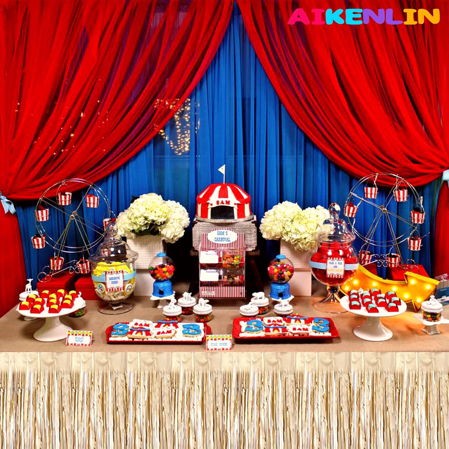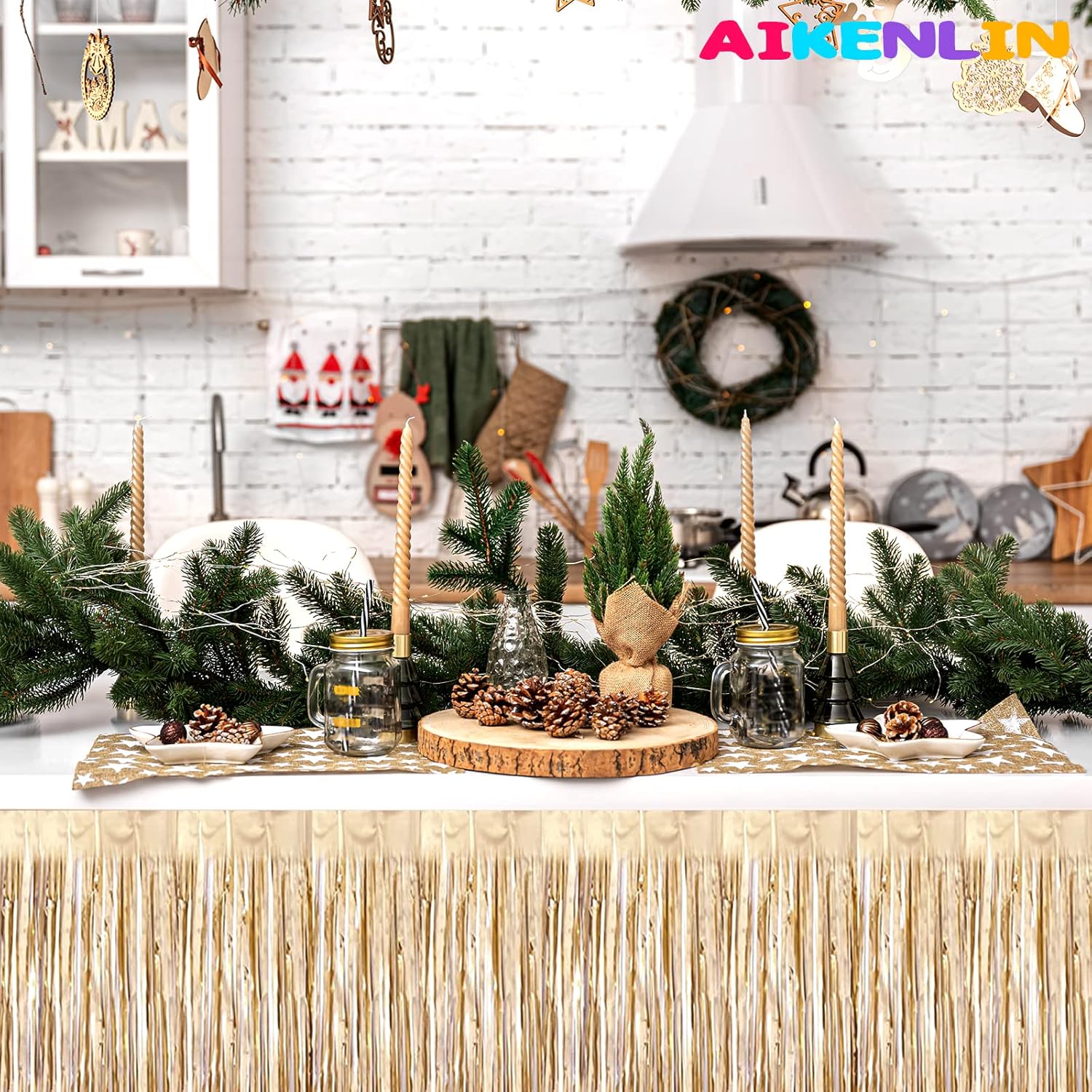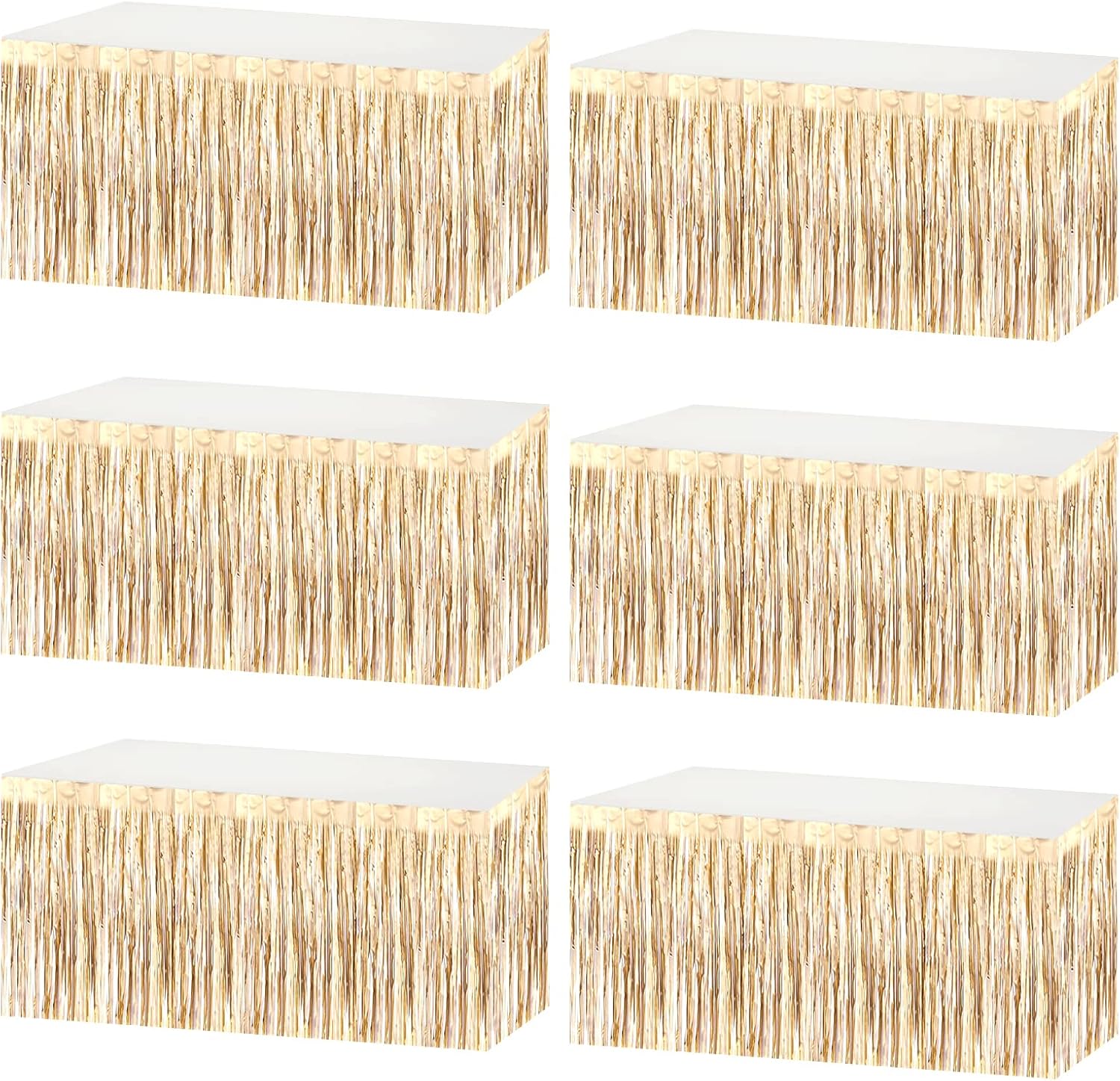 - 【Package Includes】6pcs/set metallic fringe table skirts / shiny tassel banner, beautiful and shiny, provide you with great decoration effects, Each pack of table skirt measures 29x108 inches. Each one will be 9 Ft long, 6 pack will cover 54 FT length of tables.