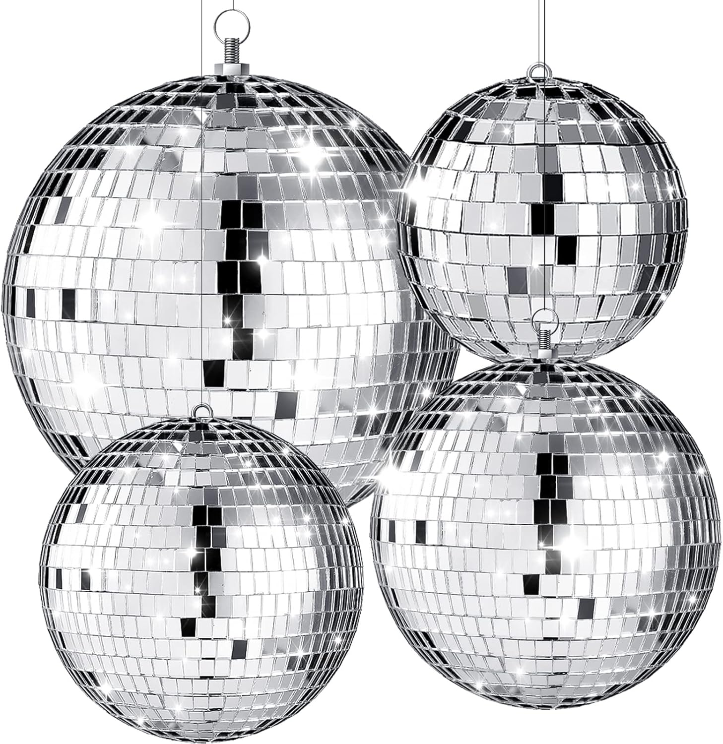 - Sufficient Quantities: the package includes 4 pieces of disco balls with hanging hole, this large mirror disco ball is covered with shiny mirror that can reflect light, you can hang it on your desired spot, wall or ceiling, and it will provide a glitter light effect, enough quantity for you to use and share