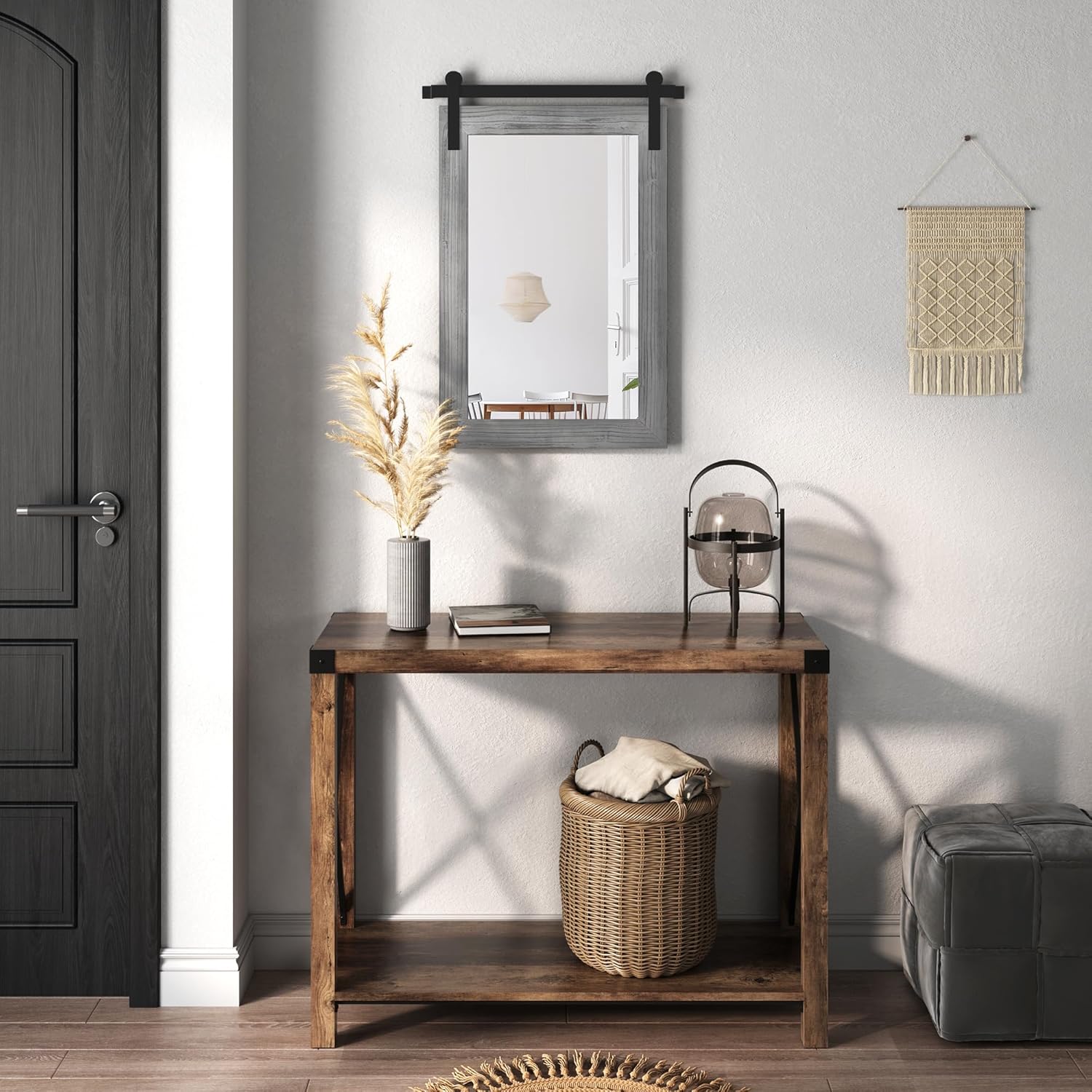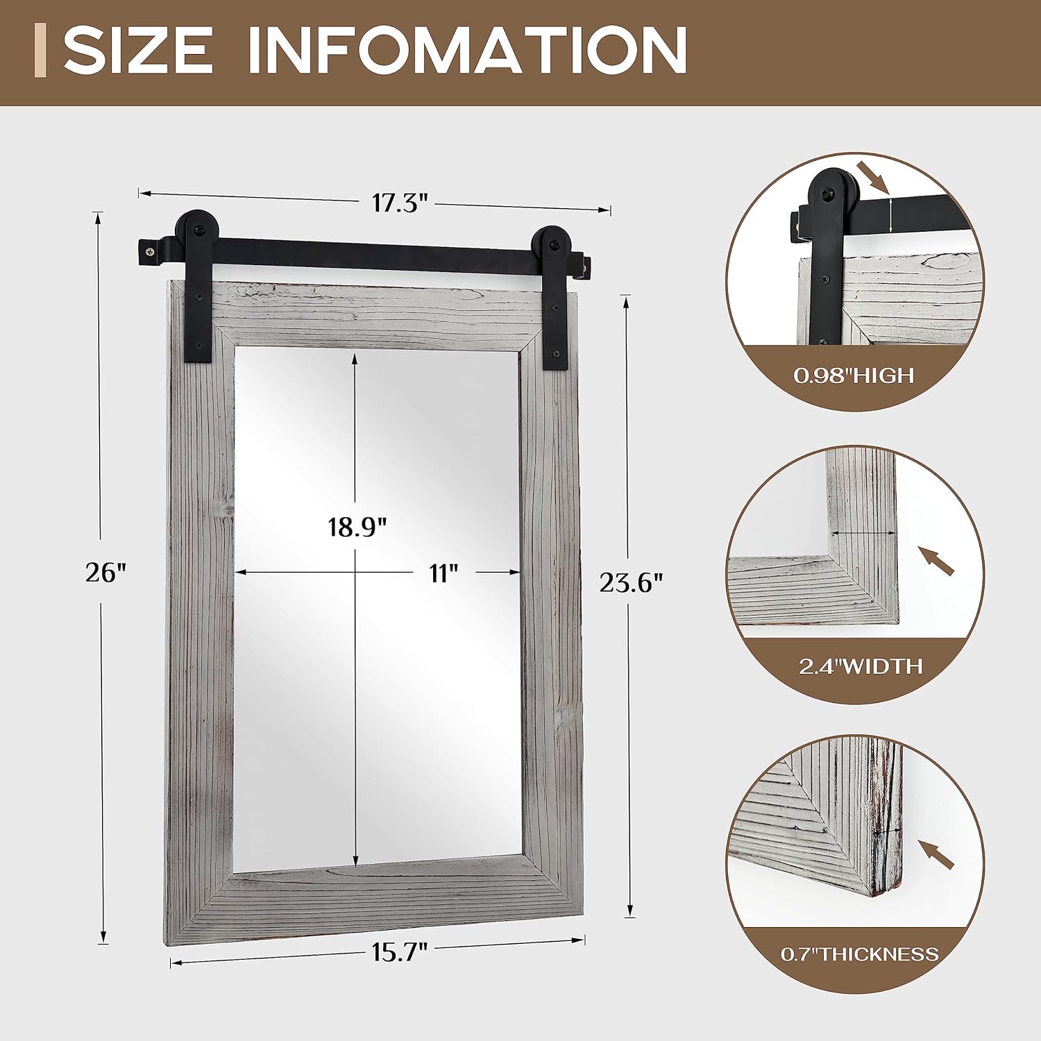 COGOOD Farmhouse Barn Door Mirror - 17 x 26 Rustic Wood Framed Wall Mirror for Bathroom, Living Room, Entryway Wall Decor (Grey)