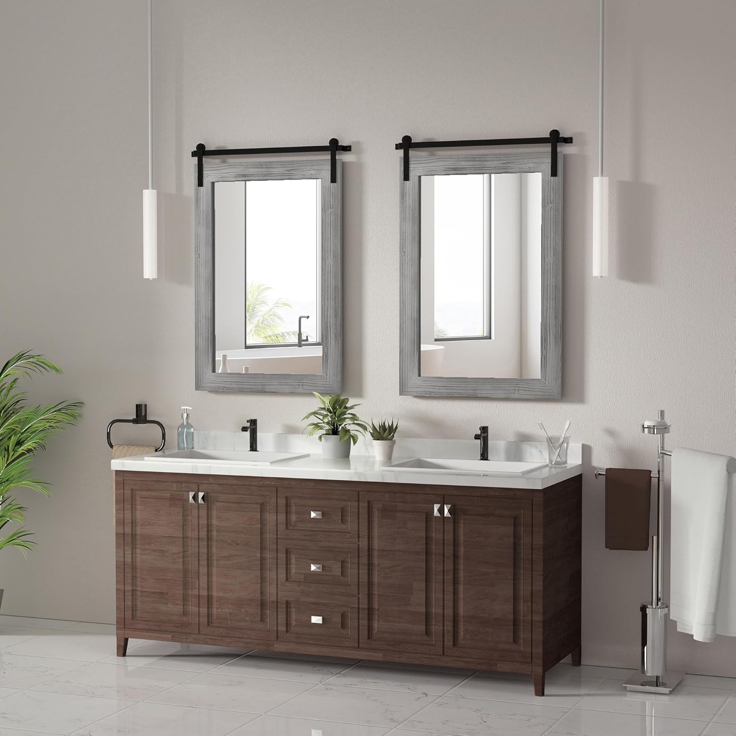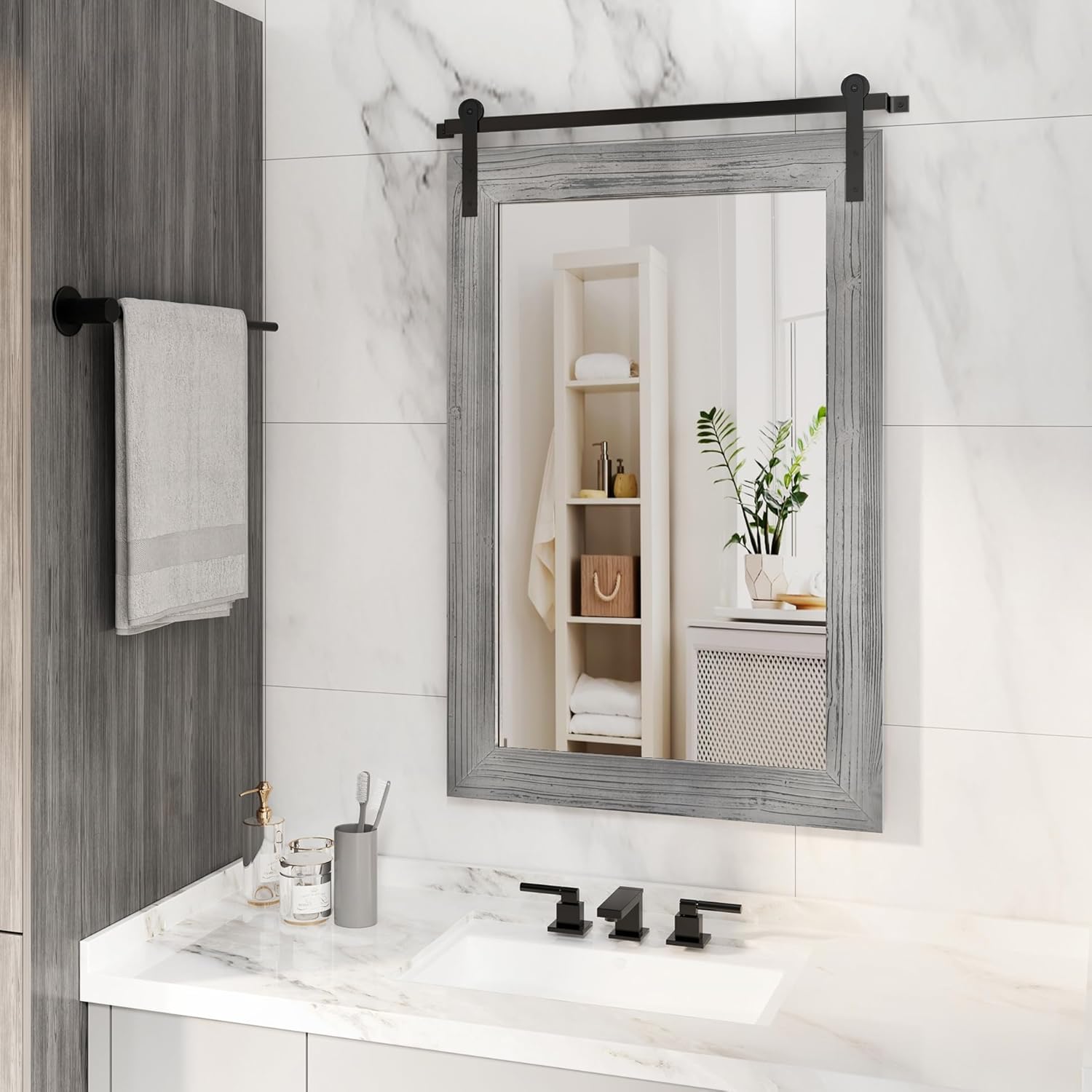 COGOOD Farmhouse Barn Door Mirror - 25 x 38 Rustic Bathroom Mirror for Living Room, Entryway, Vanity Wall Decor (Grey)