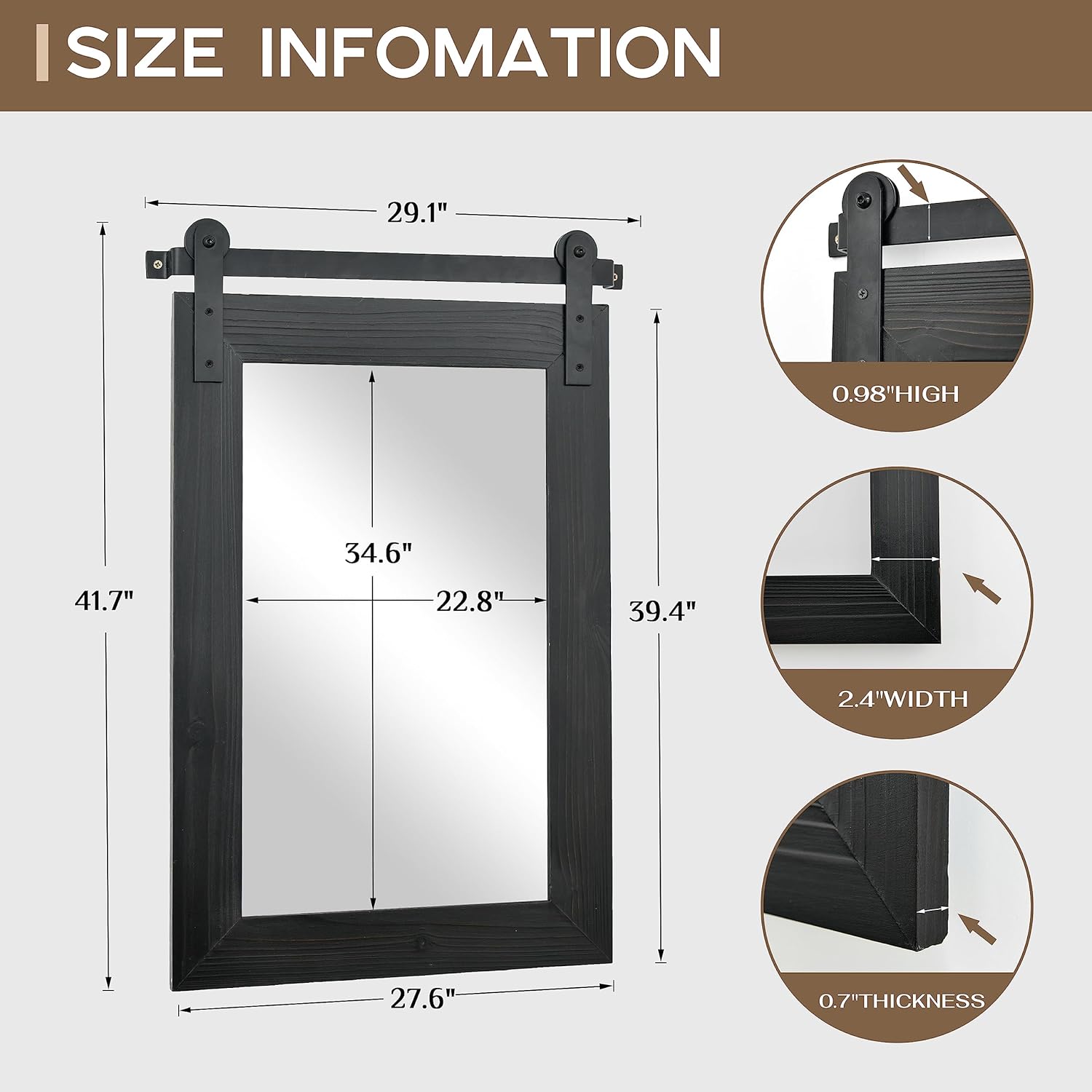 COGOOD Farmhouse Bathroom Mirror - 42 x 29 Rustic Barn Door Style Mirror for Living Room, Entryway, Vanity Wall Decor (Black)